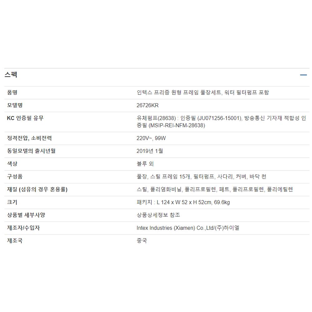 인텍스 프리즘 원형프레임 풀장세트 (워터필터펌프포함)/ 수영장 간이수영장 인텍스수영장 조립식수영장 대형수영장