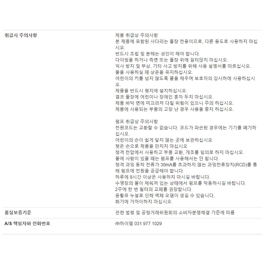 본 제품에 포함된 사다리는 풀장 전용이므로, 다른 용도로 사용하지 마십시오.