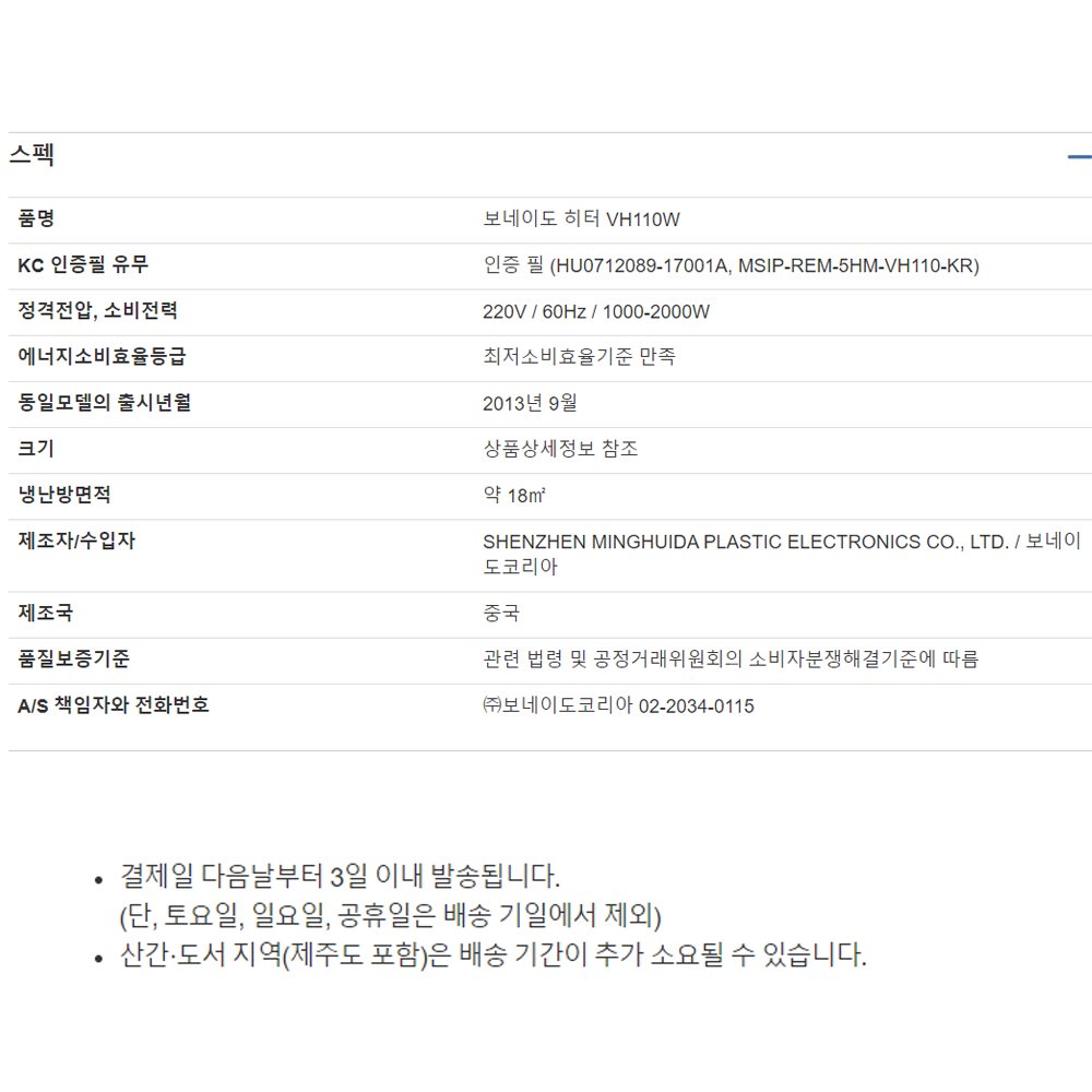 품질보증기준 상품상세참조