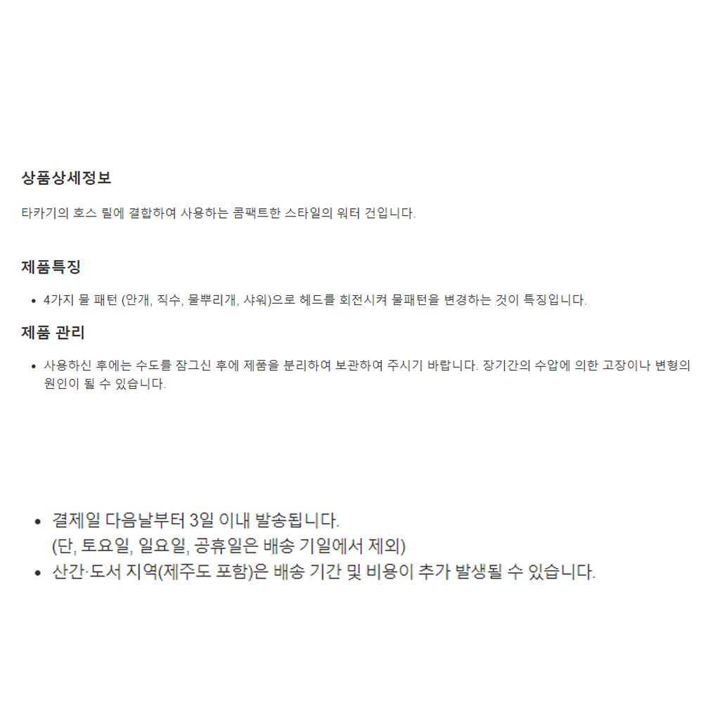 사용하신 후에는 수도를 잠그신 후에 제품을 분리하여 보관하여 주시기 바랍니다.