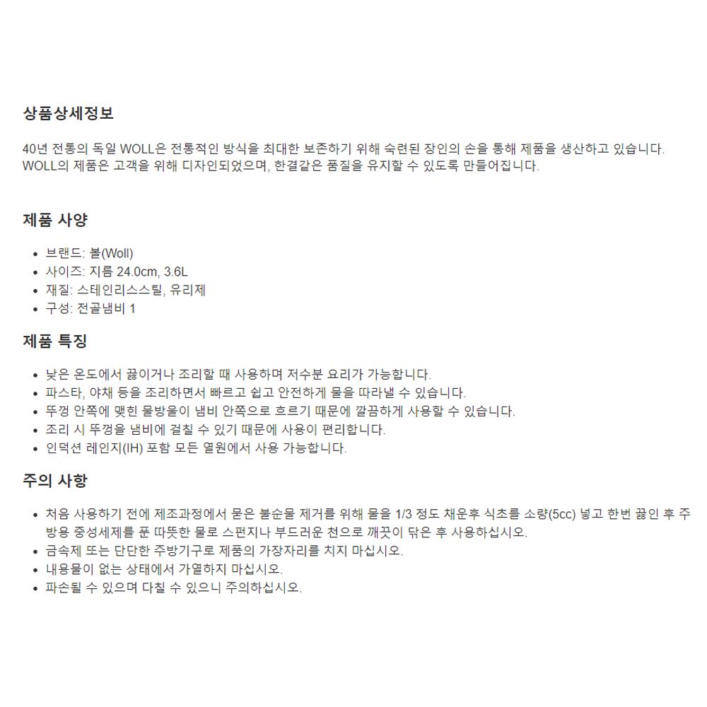 • 40년 전통의 독일 WOLL은 전통적인 방식을 최대한 보존하기 위해 숙련된 장인의 손을 통해 제품을 생산하고 있습니다.