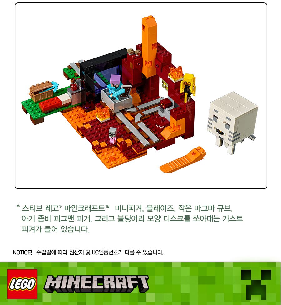 • 레고 마인크래프트 네더포털 21143 / lego 레고블럭 블럭 블록 마인크래프트레고 블럭장난감 레고피규어 레고미니피규어 주니어 크리스마스선물 어린이날선물 아이 창의력블록쌓기 완구 장난감