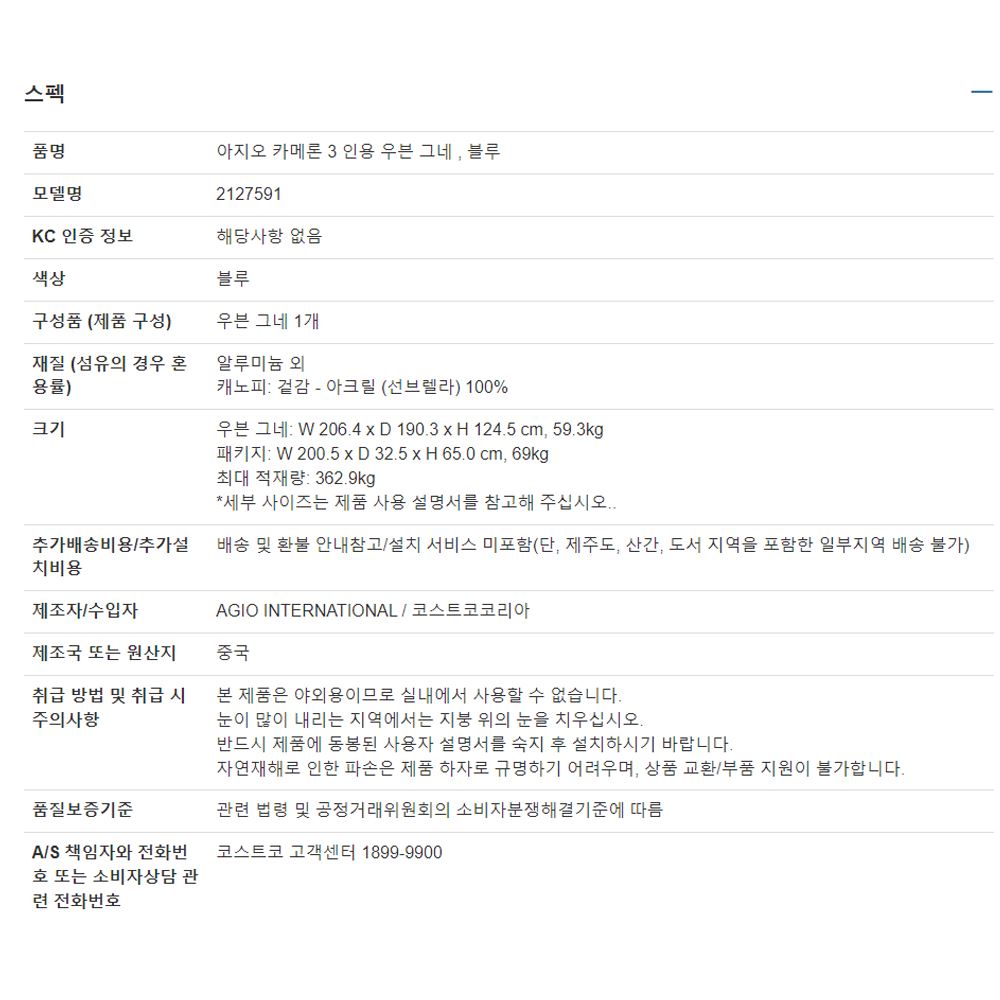 캐노피: 겉감 - 아크릴 (선브렐라) 100%