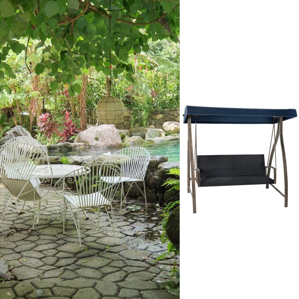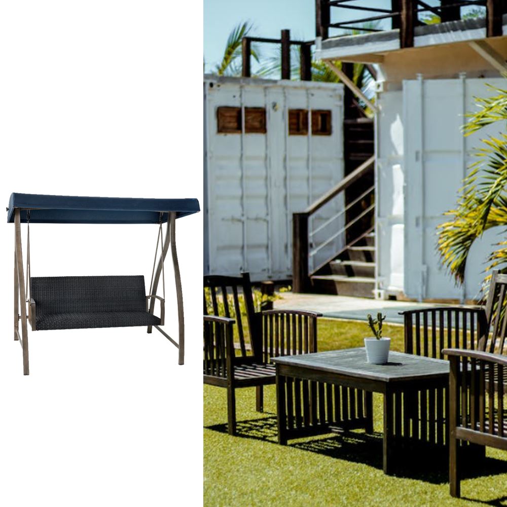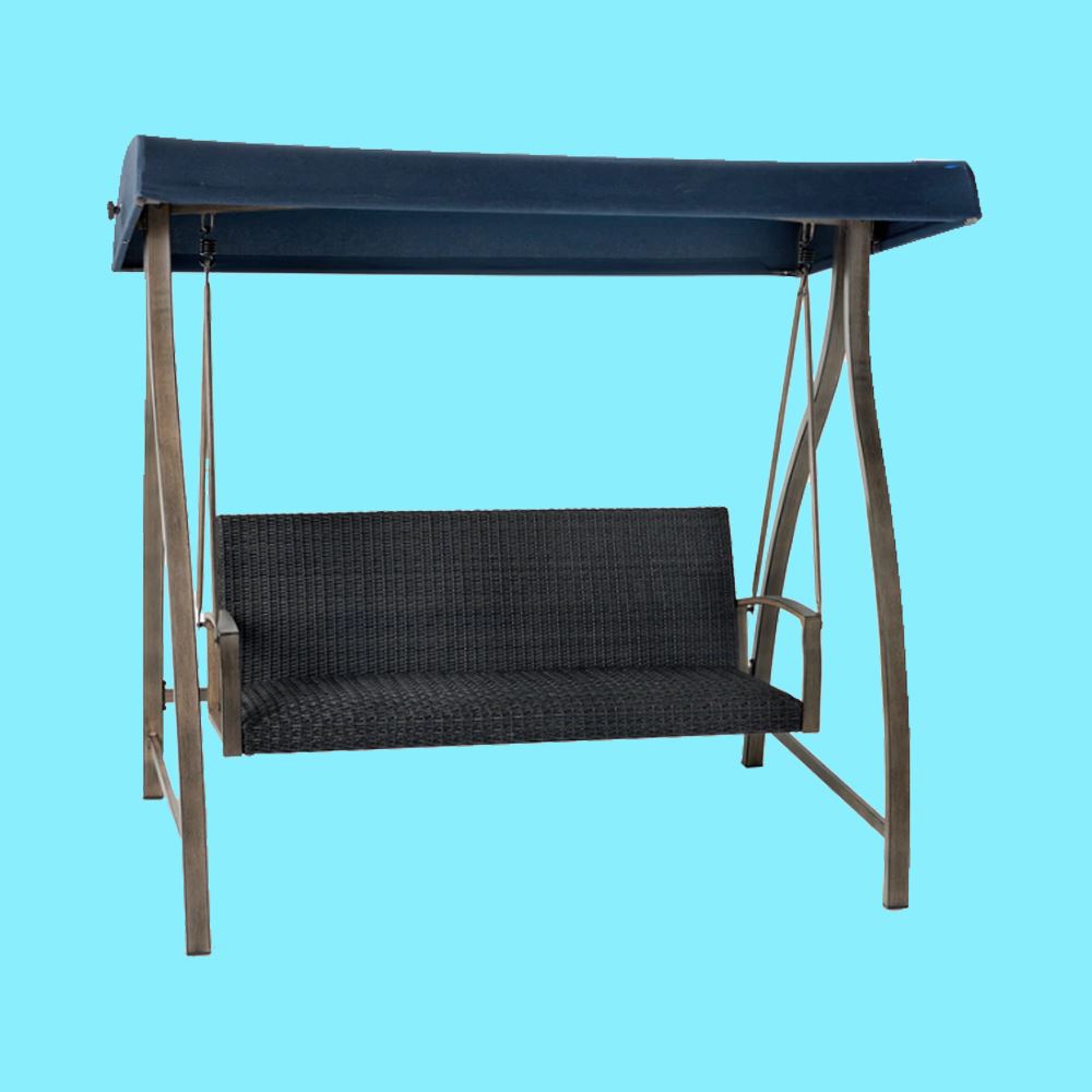 • 아지오 3인용 정원그네 캐노피 야외용 마당그네 라탄의자 실외 테라스 우븐 흔들 벤치의자 카메론