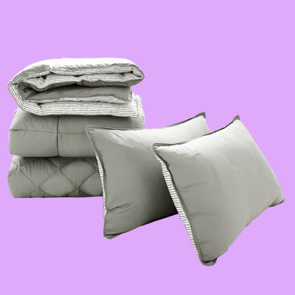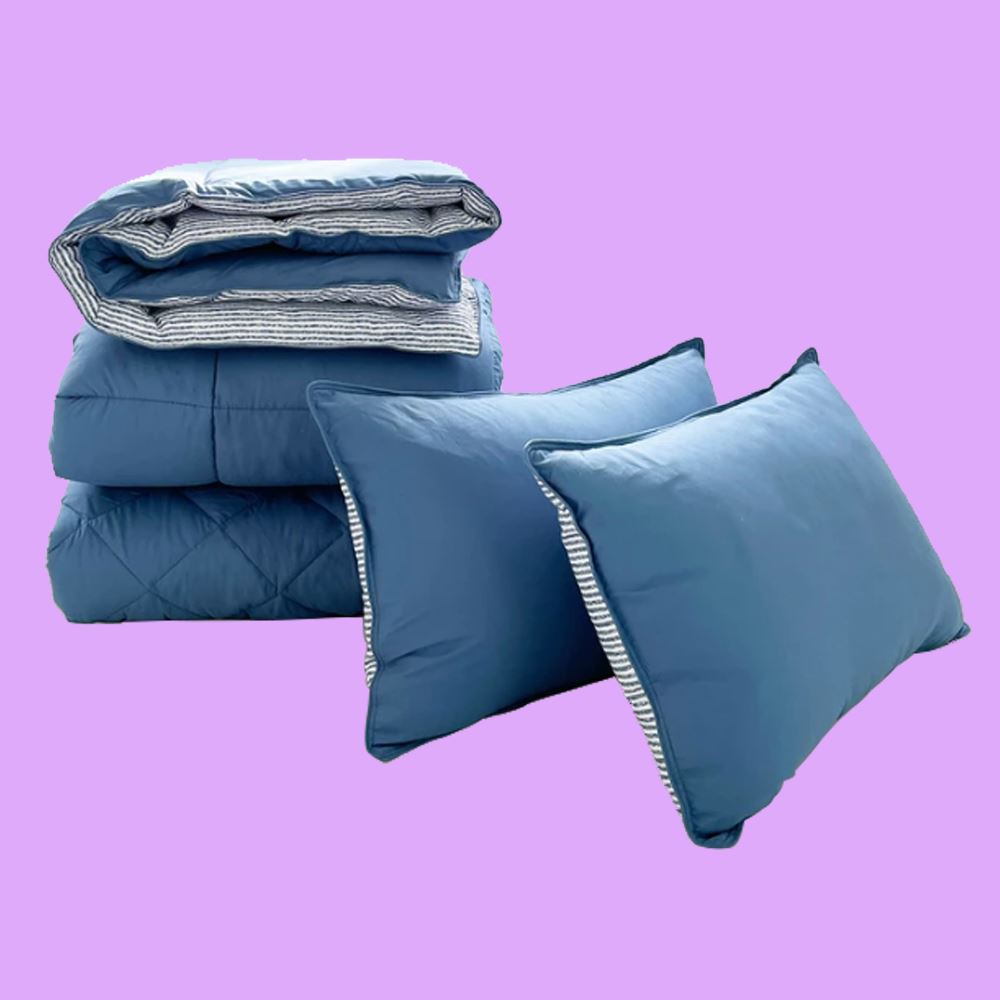 구성: 차렵이불 1, 밴딩 패드 1, 홑겹 베개 커버 2, 베개 솜 2