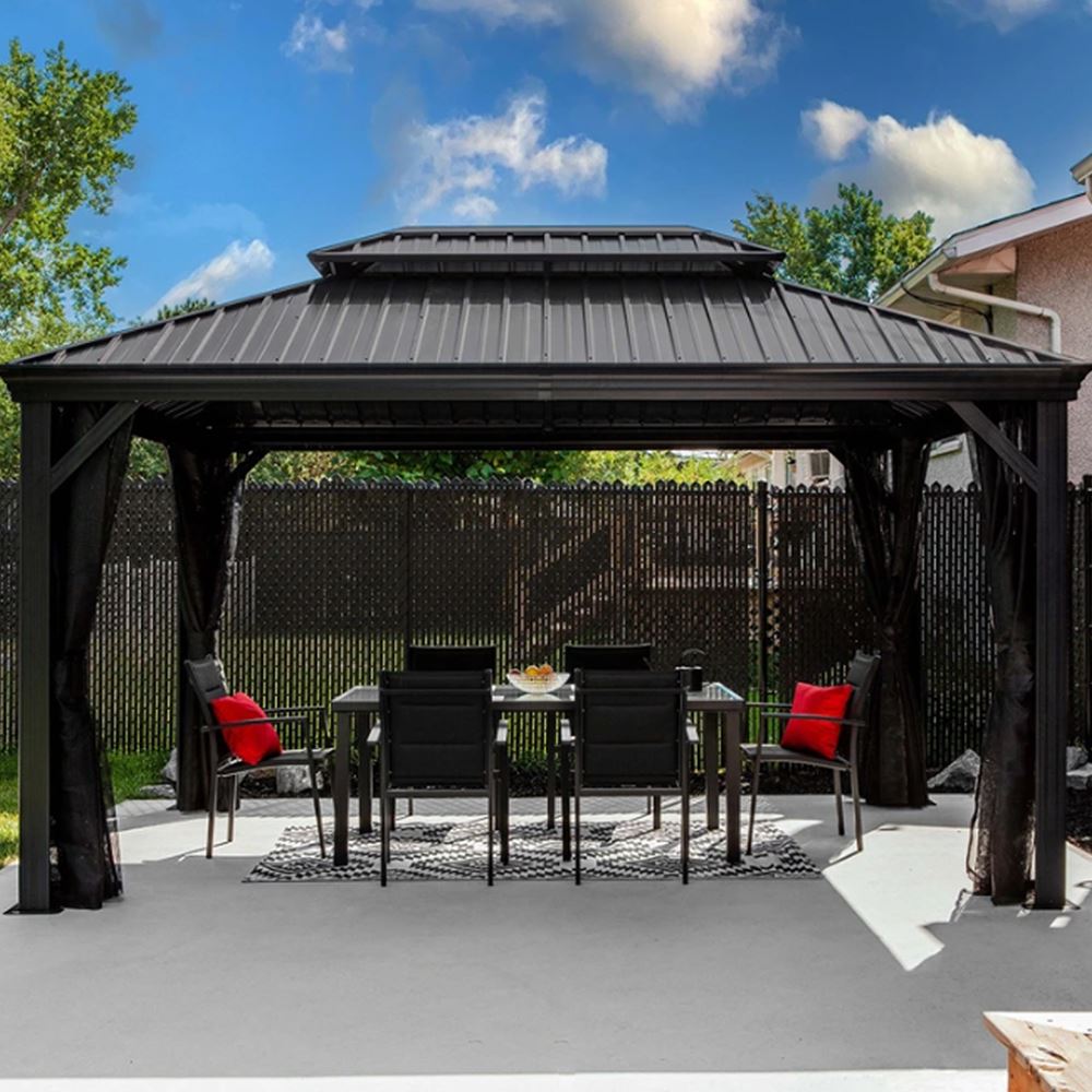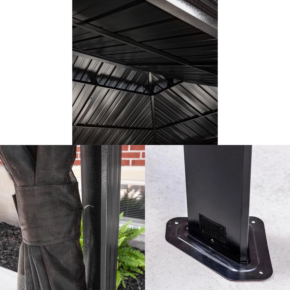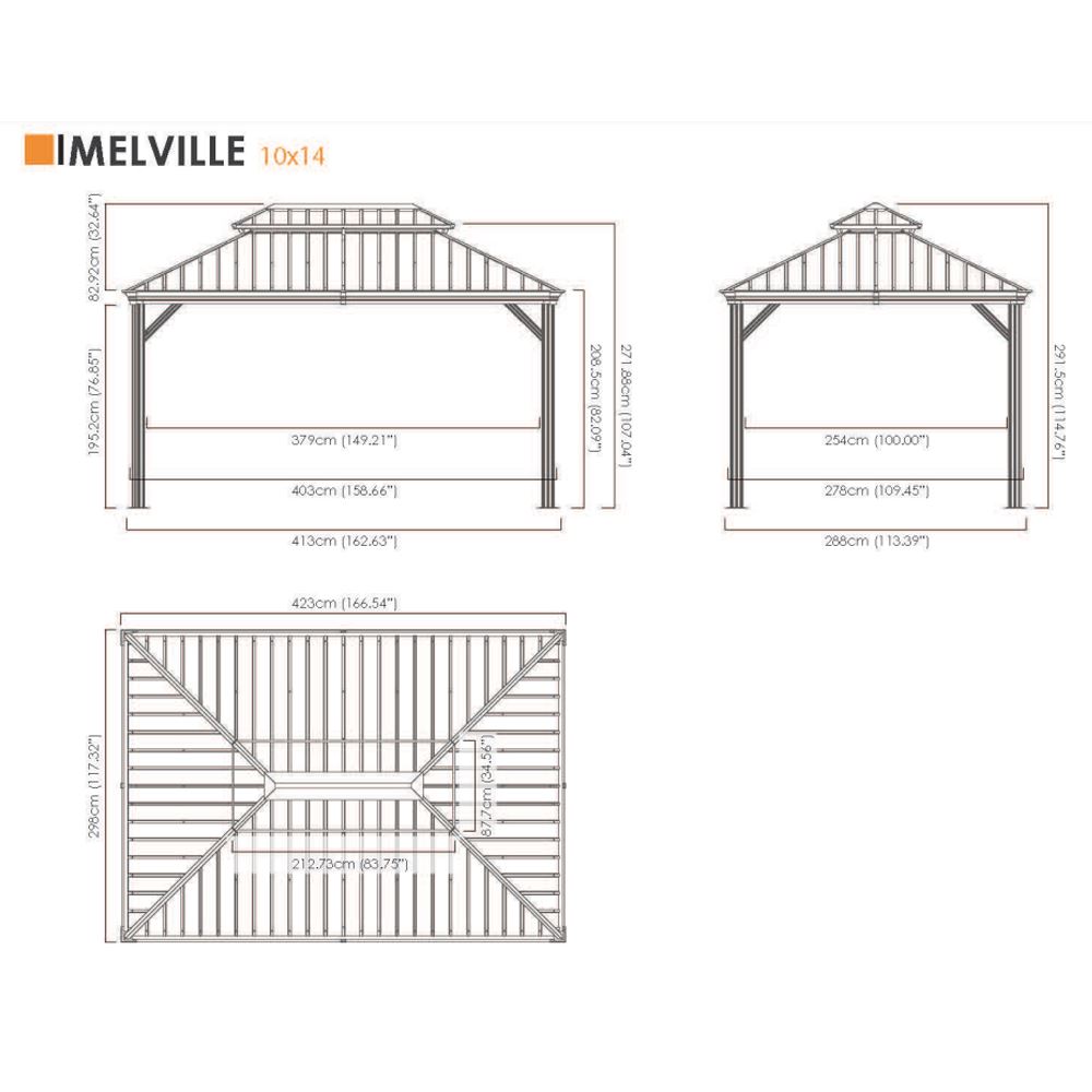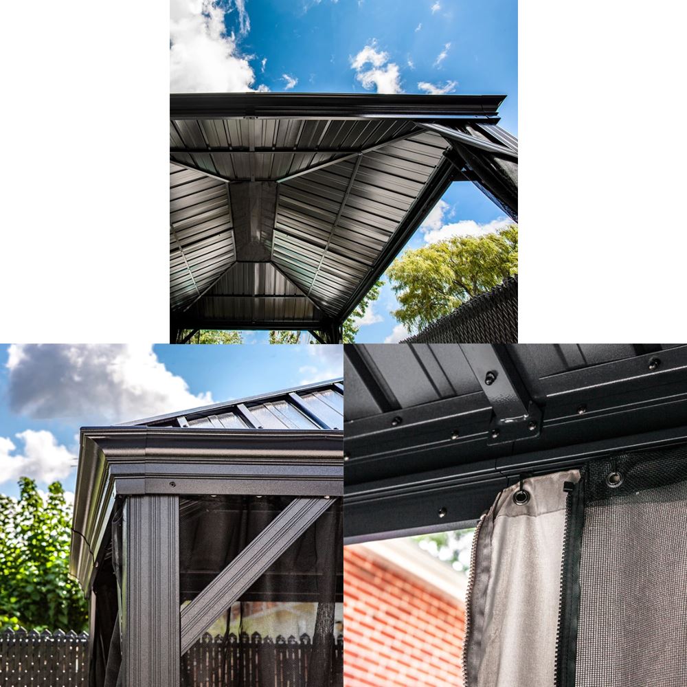• 소자그 멜빌 1014 가제보는 견고한 알루미늄 프레임과 아연도금 강철 지붕 패널로 제작되었습니다.