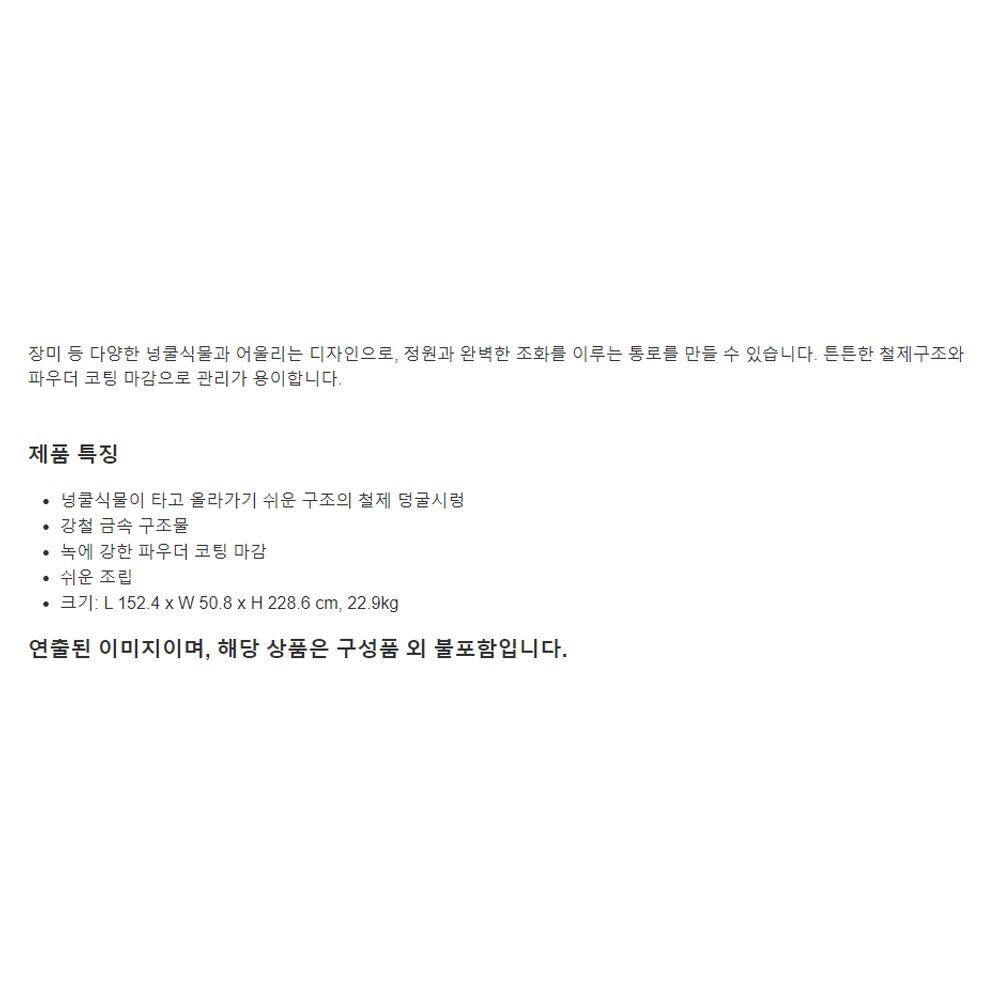 • 장미 등 다양한 넝쿨식물과 어울리는 디자인으로, 정원과 완벽한 조화를 이루는 통로를 만들 수 있습니다.