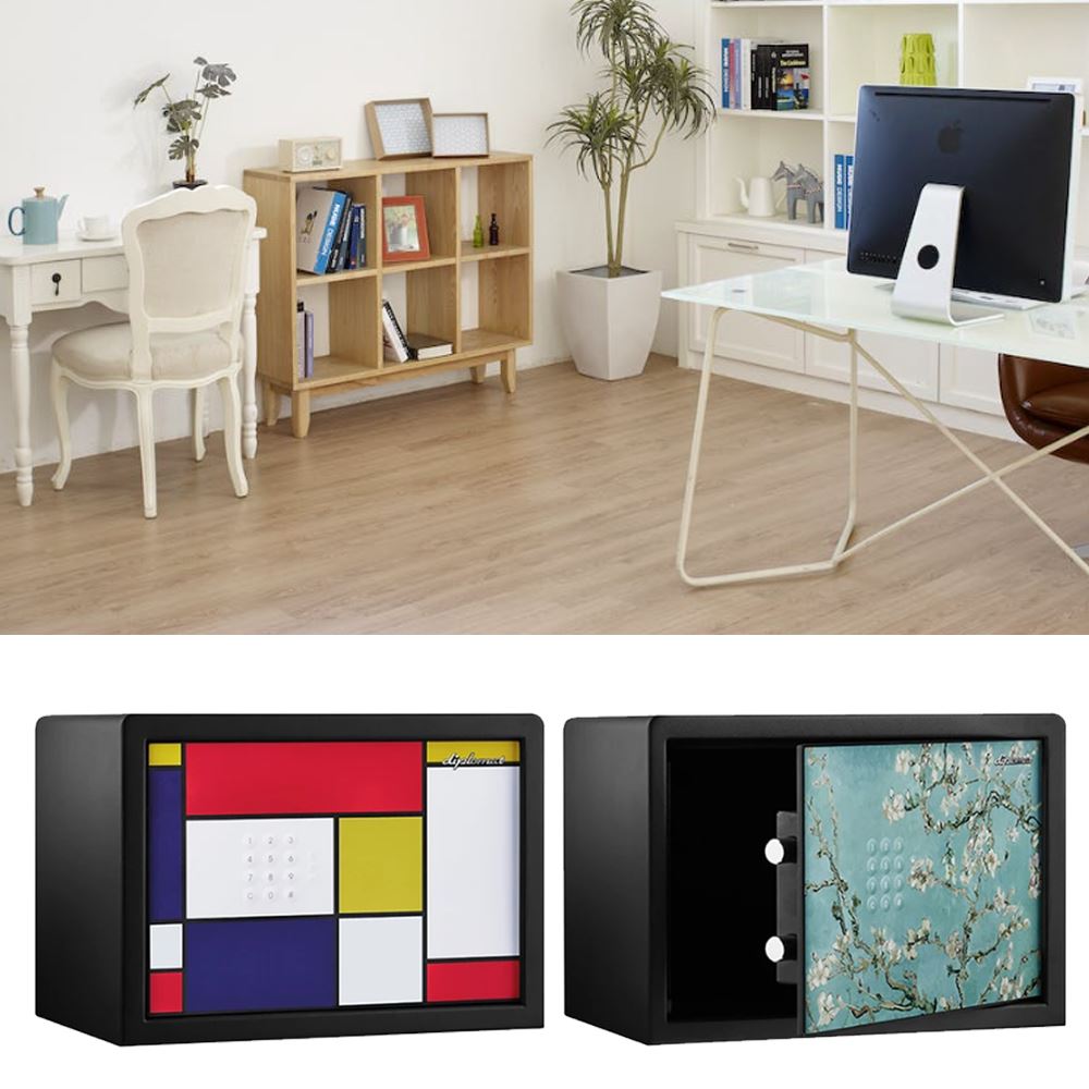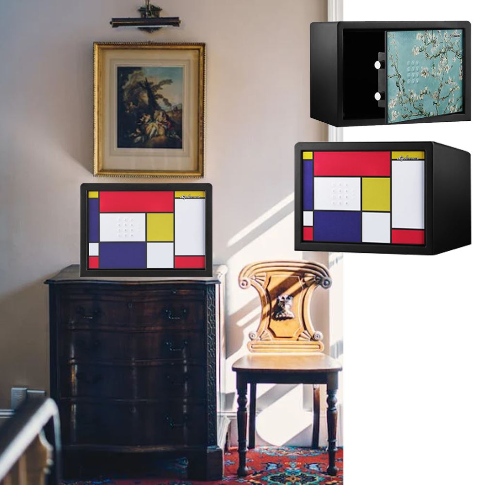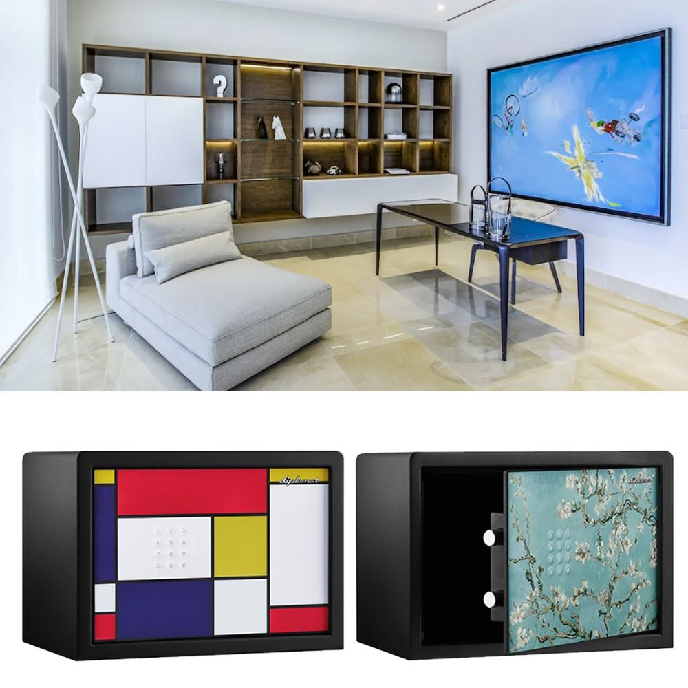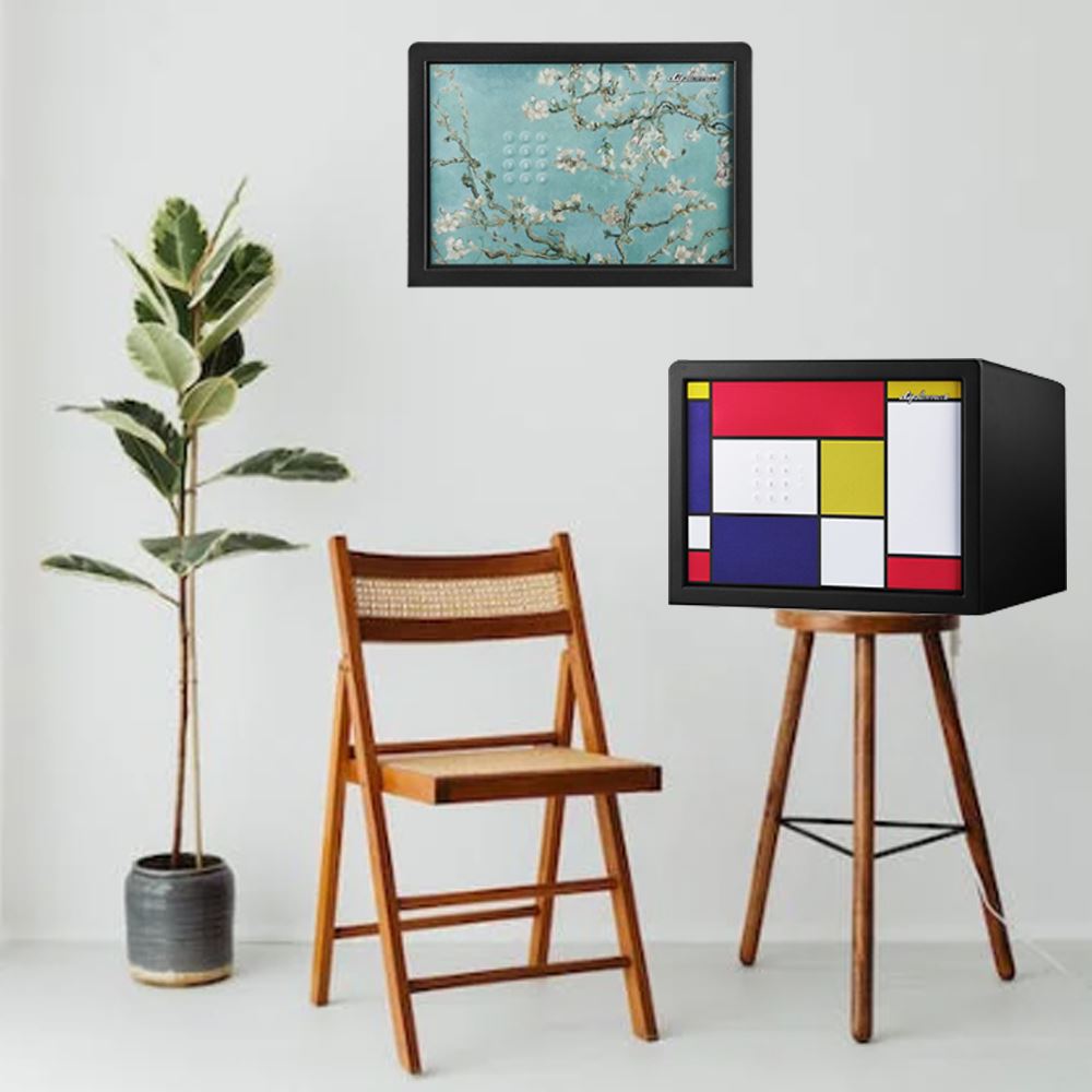 그림같은 명화 디자인, 피트 몬드리안 또는 빈센트 반 고흐의 명화를 품은 금고.