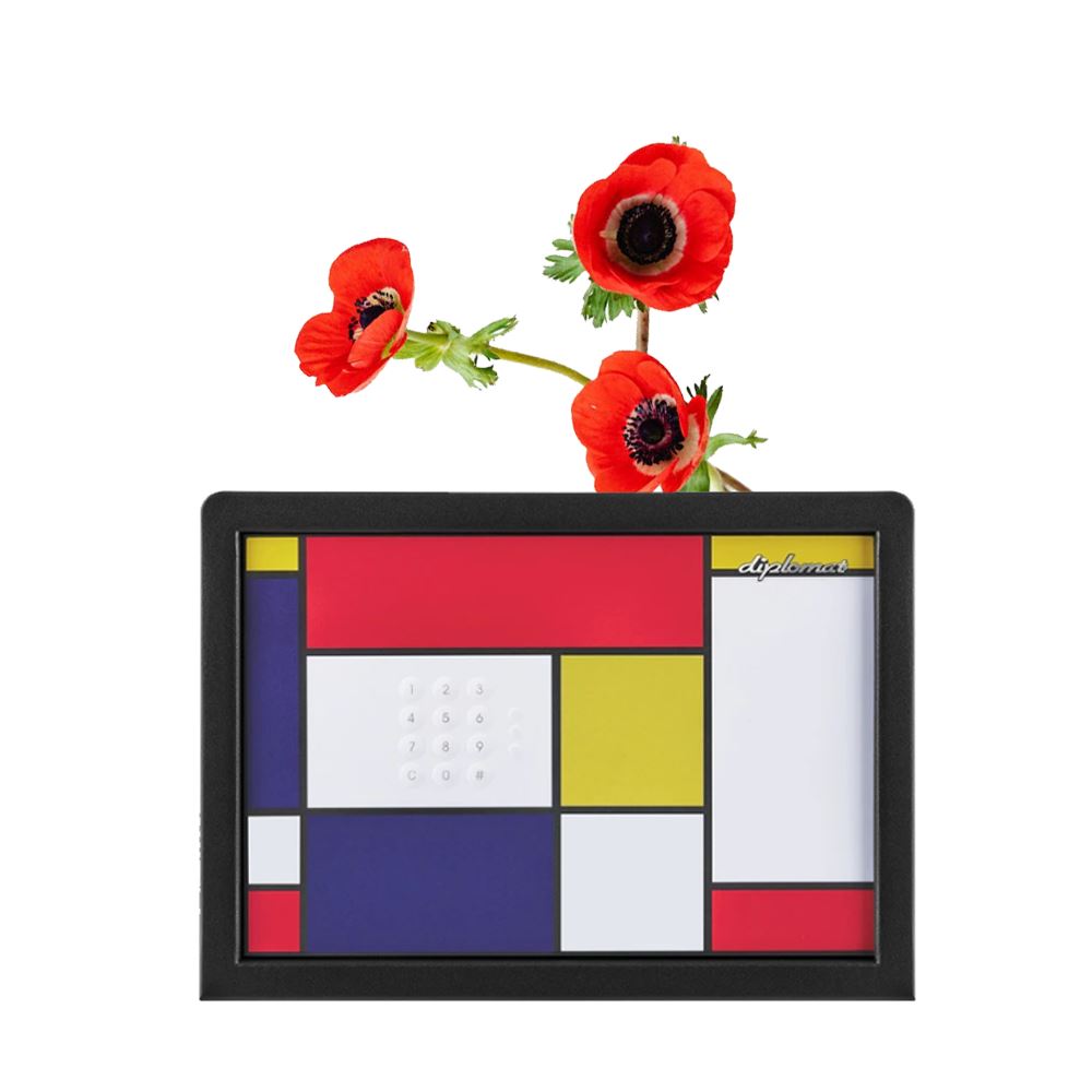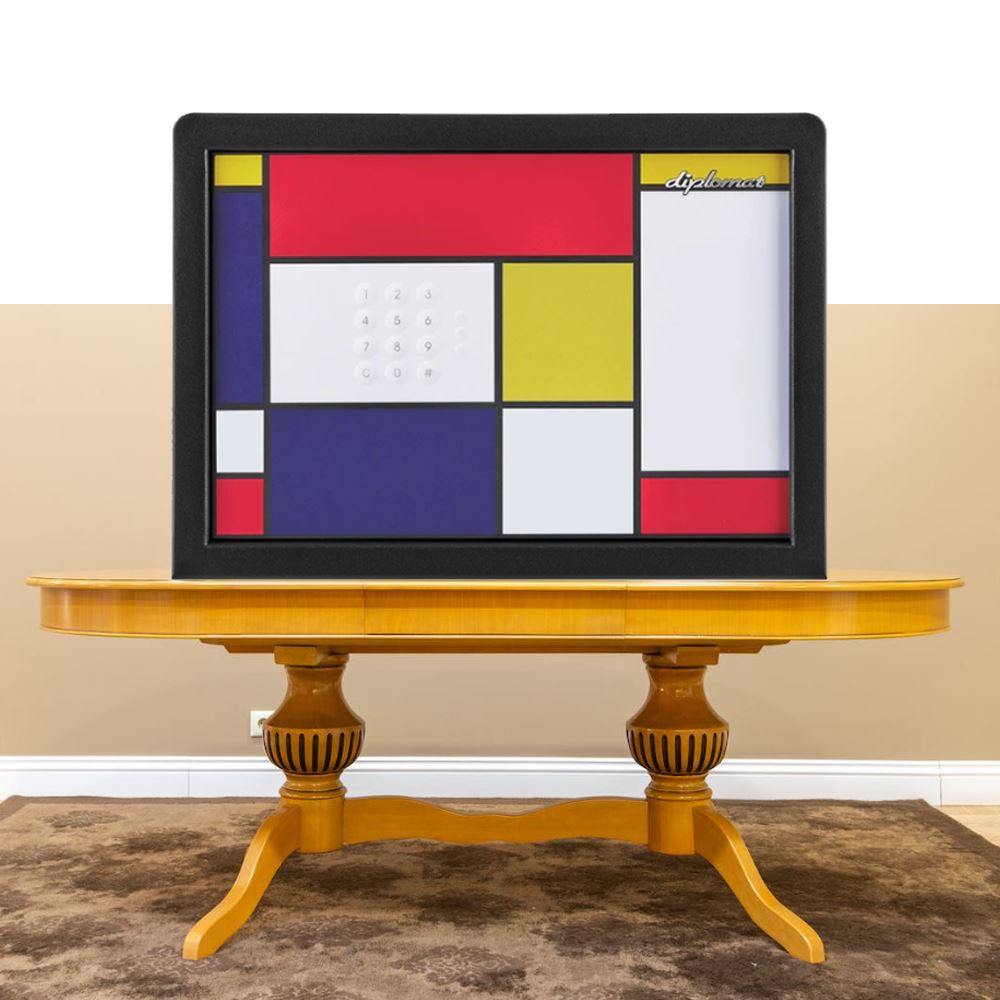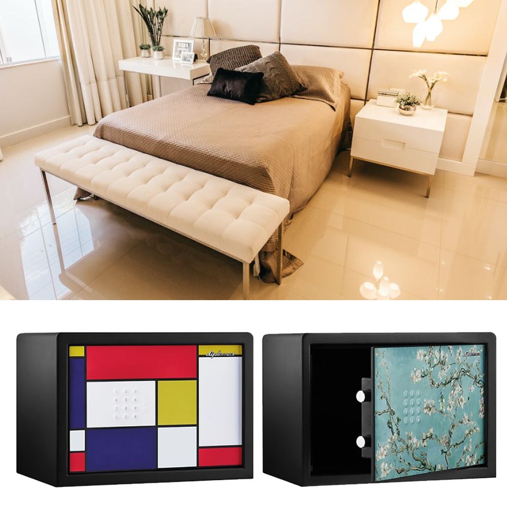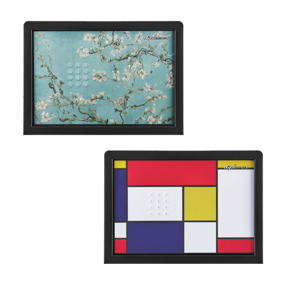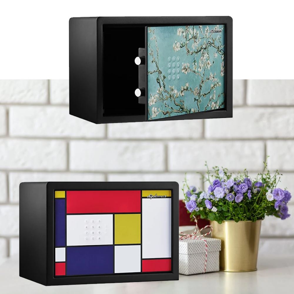 그림같은 명화 디자인, 피트 몬드리안 또는 빈센트 반 고흐의 명화를 품은 금고.