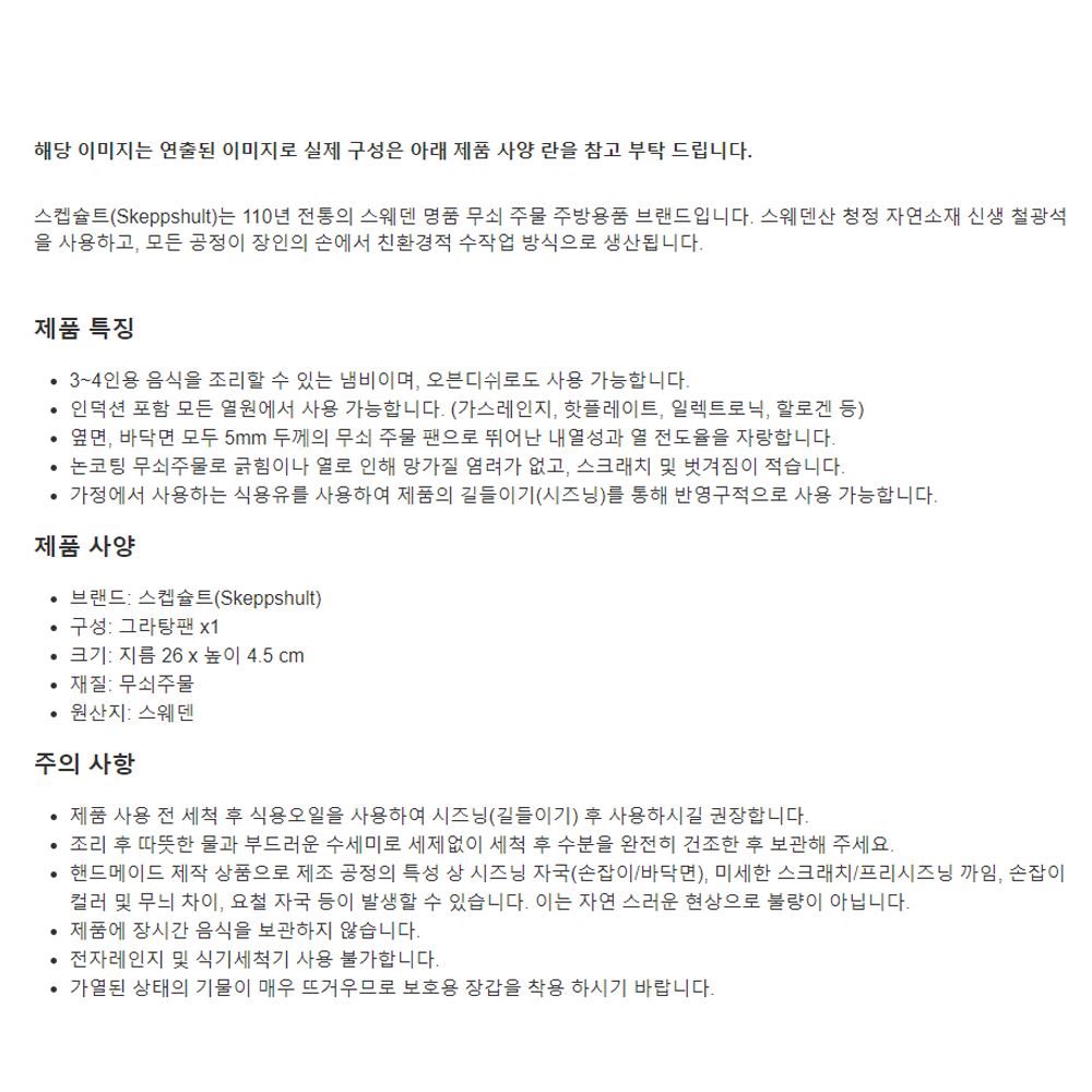 스켑슐트 인덕션용 그라탕 팬 후라이팬 25cm 프라이팬 무쇠주물팬 깊은 후라이펜 IH
