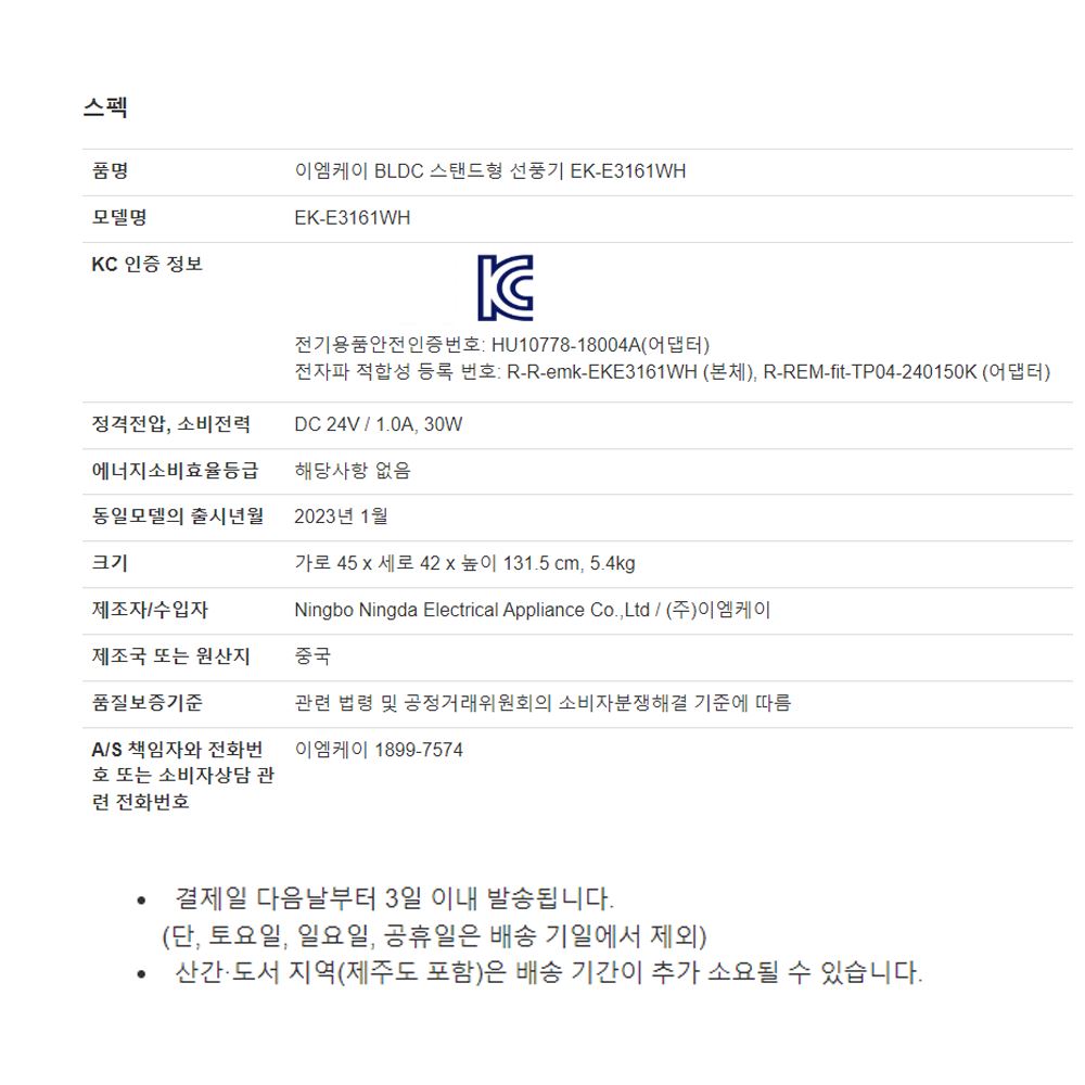 • 이엠케이 스탠드형 bldc 선풍기 저소음 리모컨 가정용 조용한 키큰선풍기 40cm 리모콘 EMK EK-E3161WH 추천