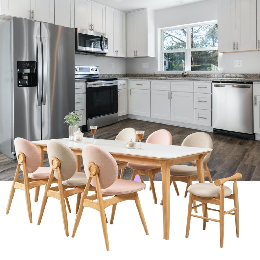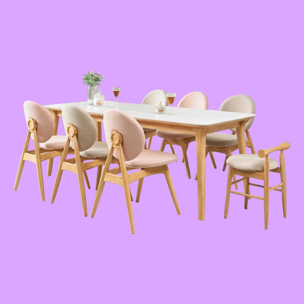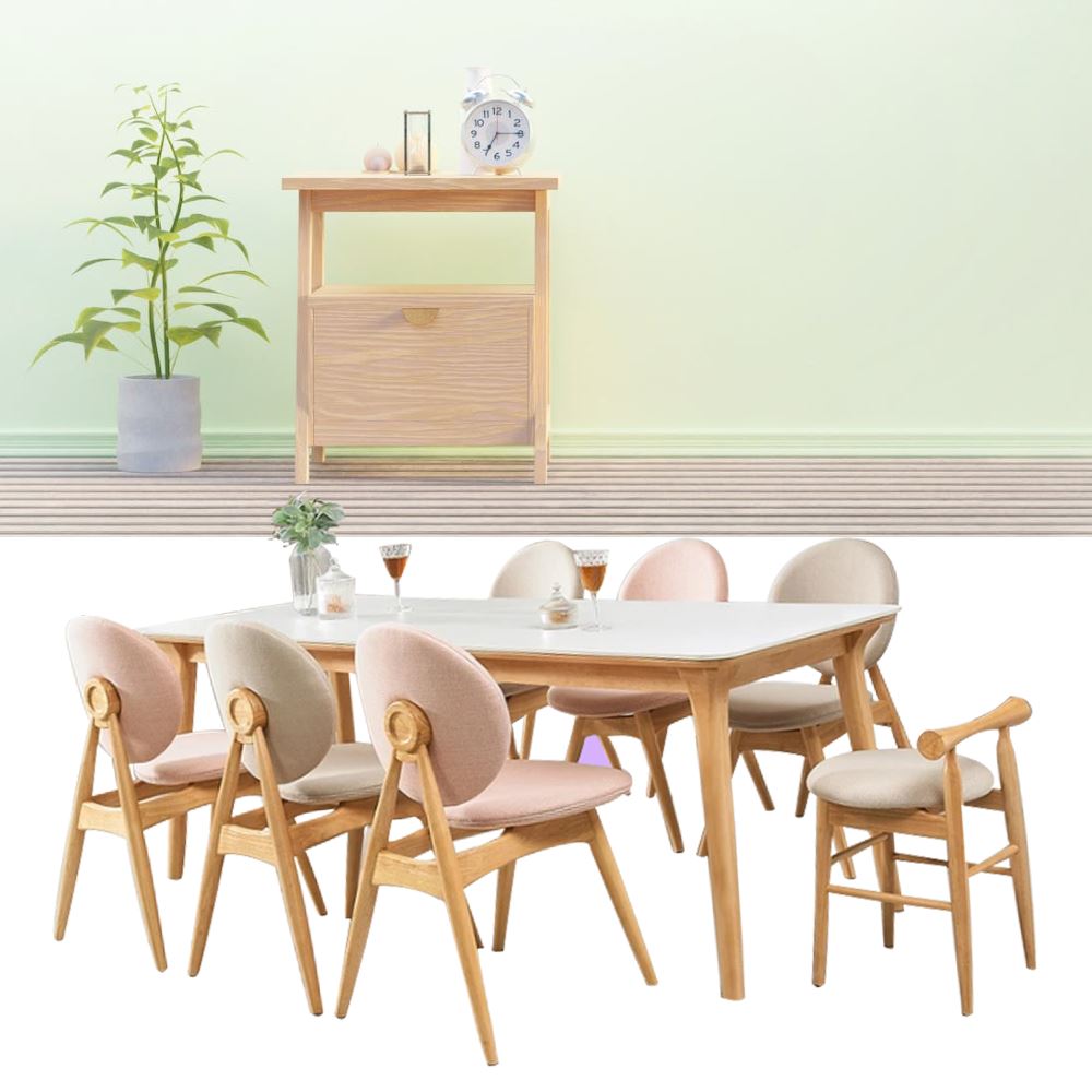 색상 : 색상 : 의자,식탁프레임-내추럴/상판-화이트/의자-화이트3, 핑크3, 미니화이트의자1