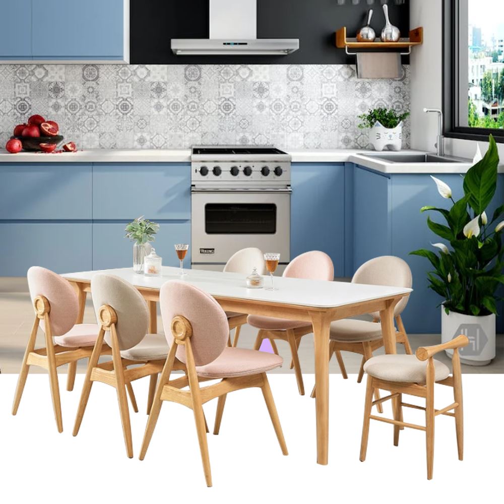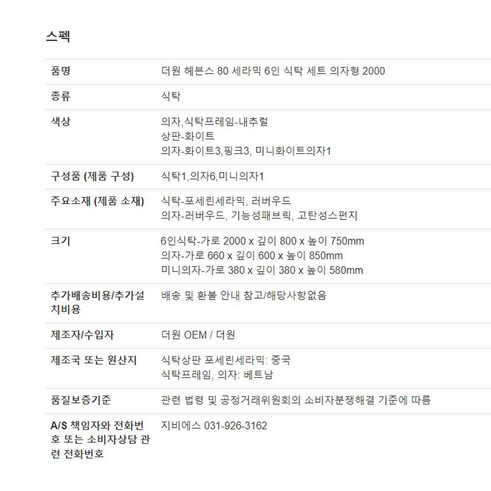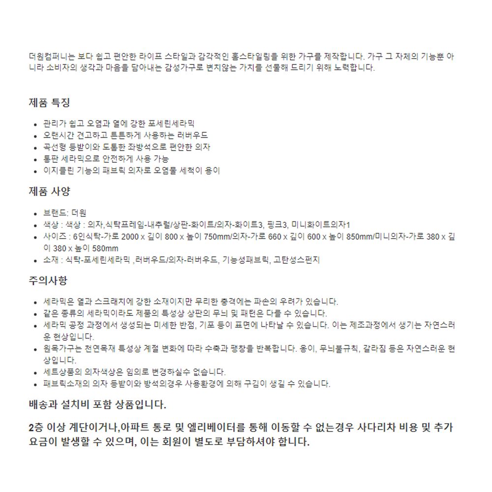 사이즈 : 6인식탁-가로 2000 x 깊이 800 x 높이 750mm/의자-가로 660 x 깊이 600 x 높이 850mm/미니의자-가로 380 x 깊이 380 x 높이 580mm