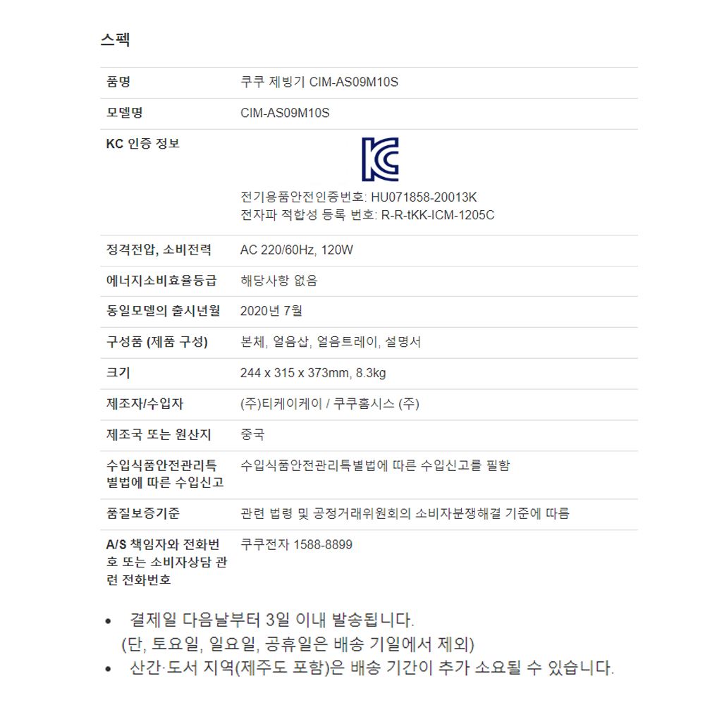 • 쿠쿠 가정용 얼음 제빙기 아이스메이커 업소 휴대 캠핑용 카페 사무실 소형 스텐 얼음제조기 CIM-AS09M10S 추천