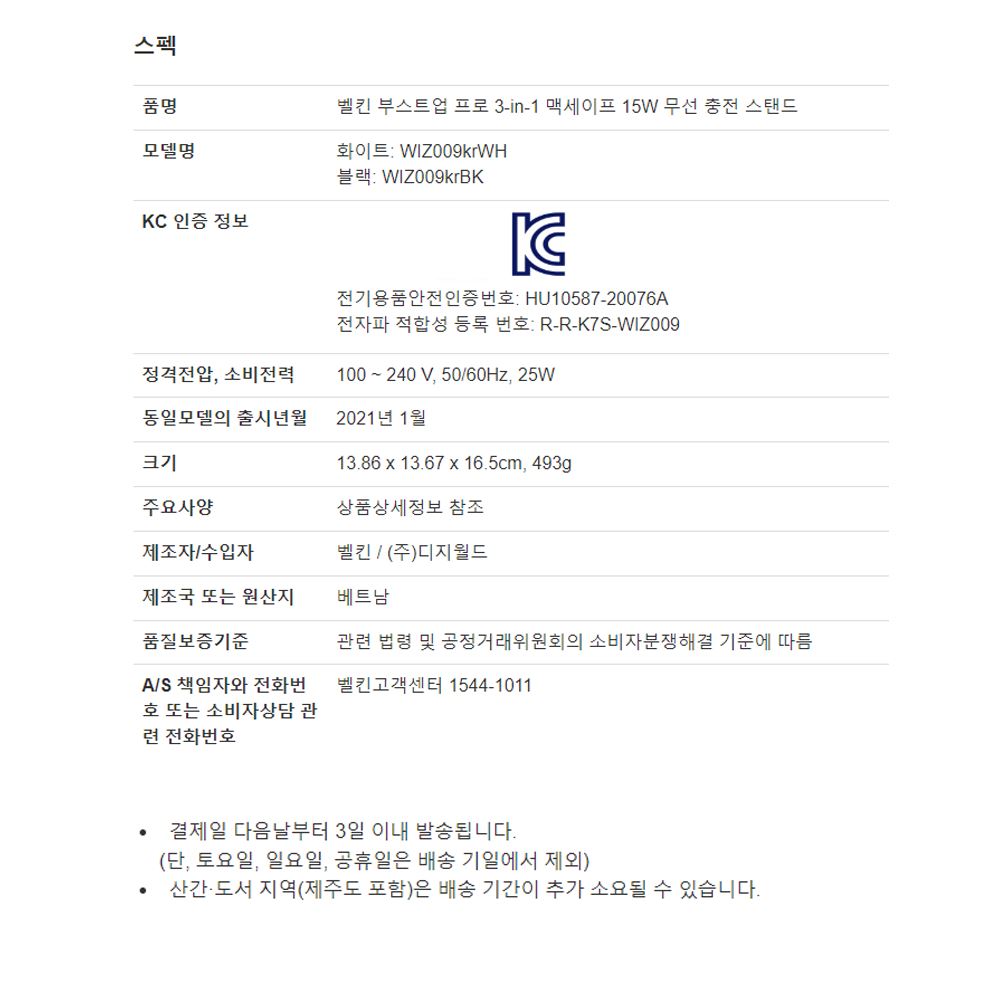 • 벨킨 부스트업 3in1 맥세이프 15W 무선 충전기 스탠드