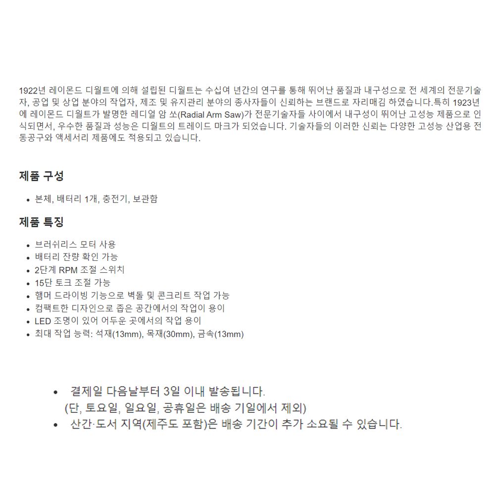 디월트 충전 전동드릴 햄머드릴세트 무선 드라이버 공구 충전기 배터리세트 20V 브러쉬리스 / 다모아아토즈님의 스토어 / 디비디비 / 구매하기 / 특가할인