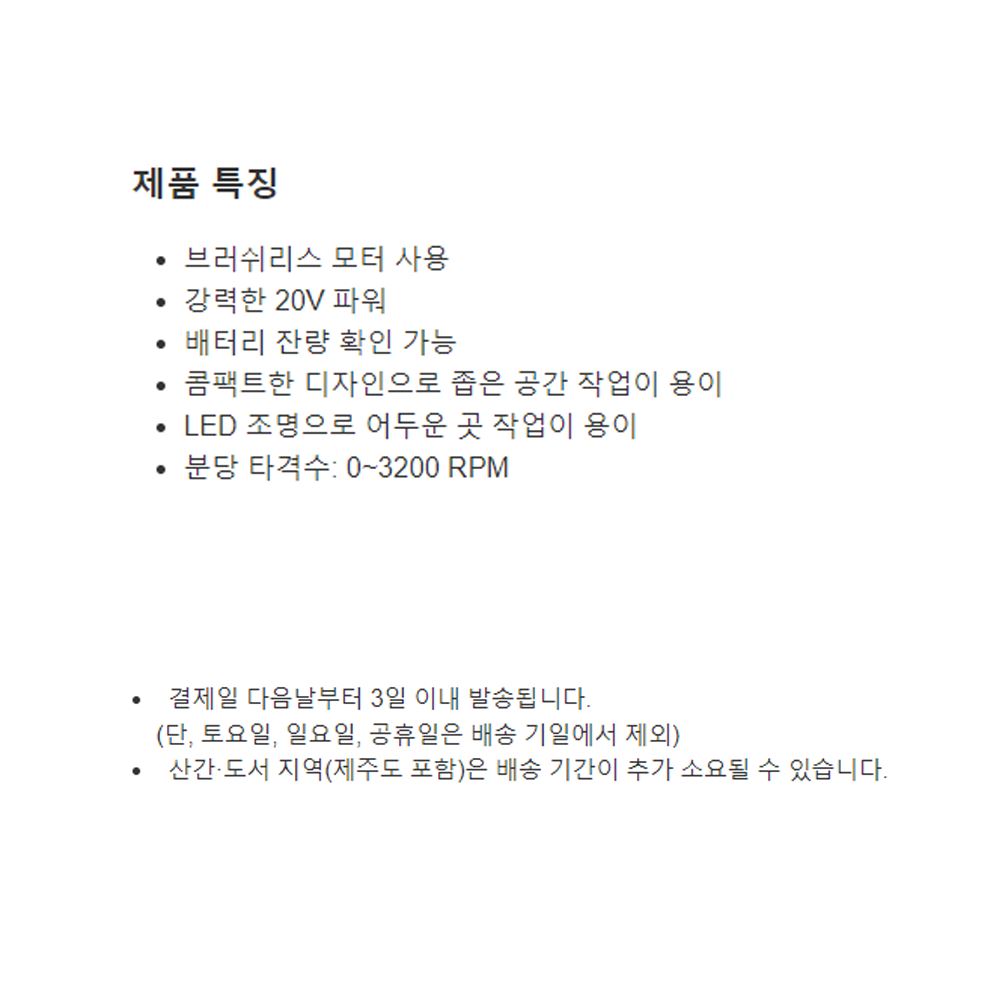 • 디월트 충전 전동드릴 임팩드릴세트 무선 드라이버 공구 20V 브러쉬리스 충전기 배터리2개