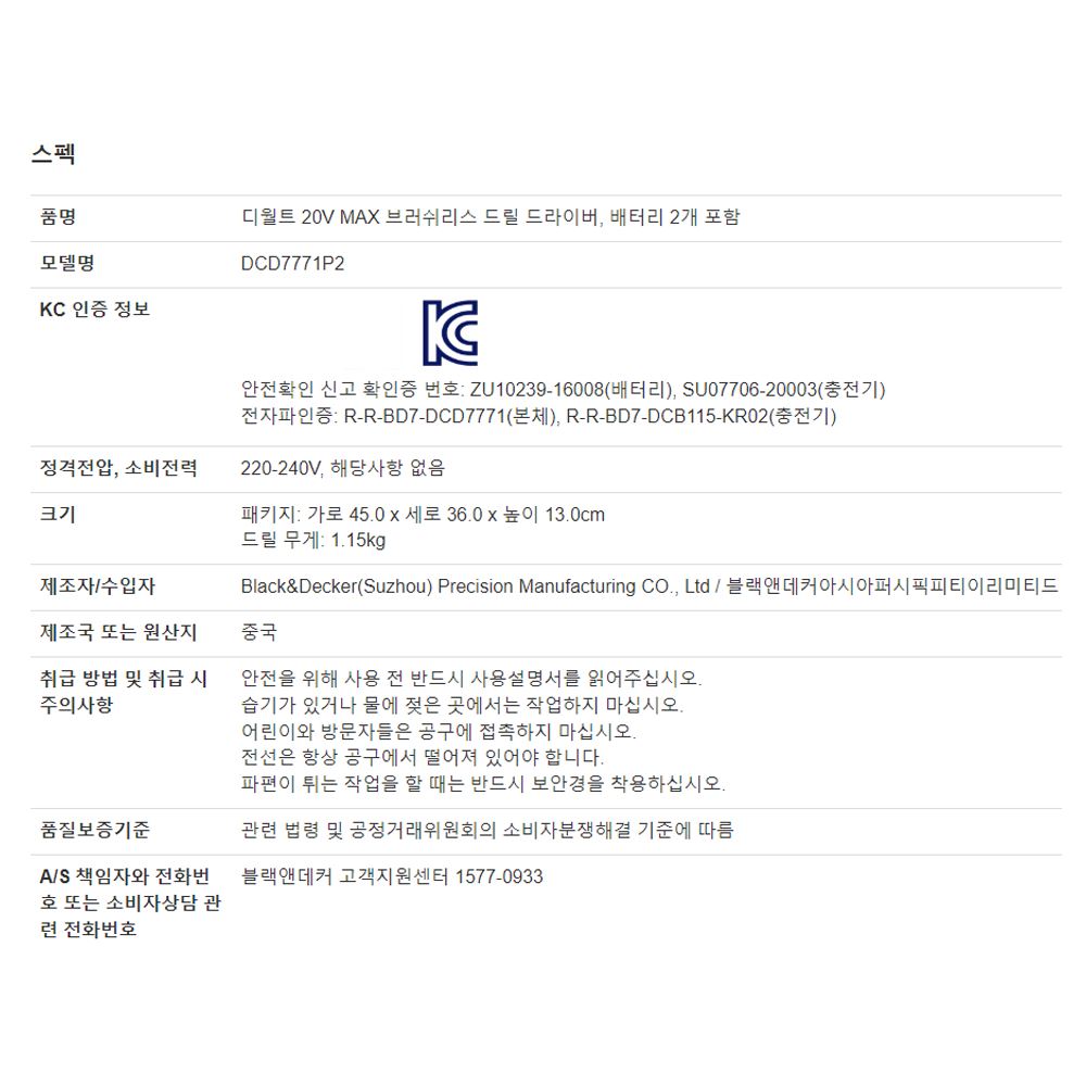 • 디월트 전동 충전드릴 브러쉬리스 드릴세트 무선 드라이버 공구 20V 충전기 배터리2개 MAX 브러쉬리스 드릴 드라이버 DCD7771P2 추천