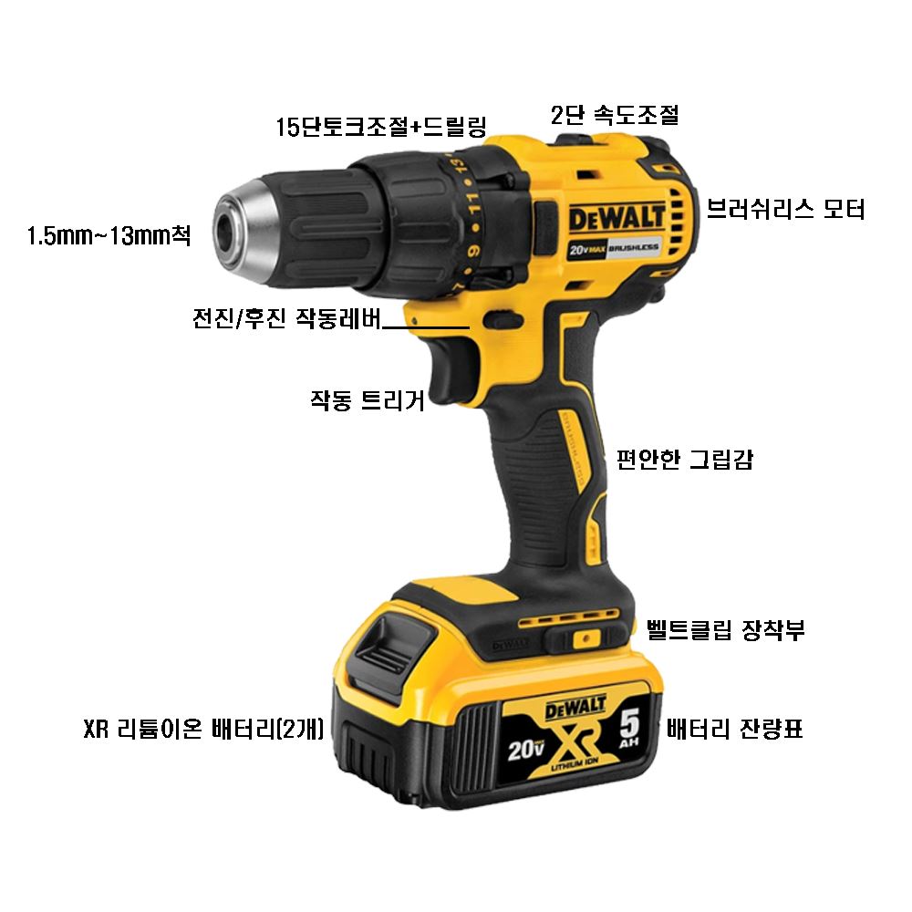 디월트 전동 충전드릴 브러쉬리스 드릴세트 무선 드라이버 공구 20V 충전기 배터리2개