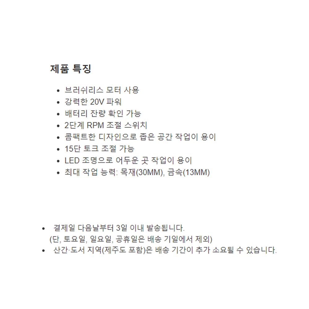 디월트 전동 충전드릴 브러쉬리스 드릴세트 무선 드라이버 공구 20V 충전기 배터리2개 / 다모아아토즈님의 스토어 / 디비디비 / 구매하기 / 특가할인