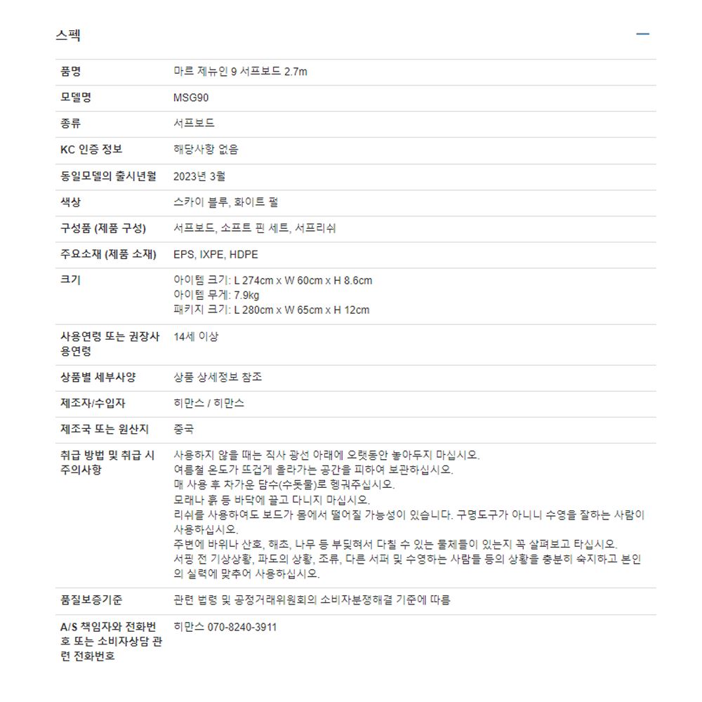 • 마르 서핑보드 2.7m 소프트 서프보드 수영용품 초보전문가 해양 수상레저 물놀이 제뉴인9 MSG90