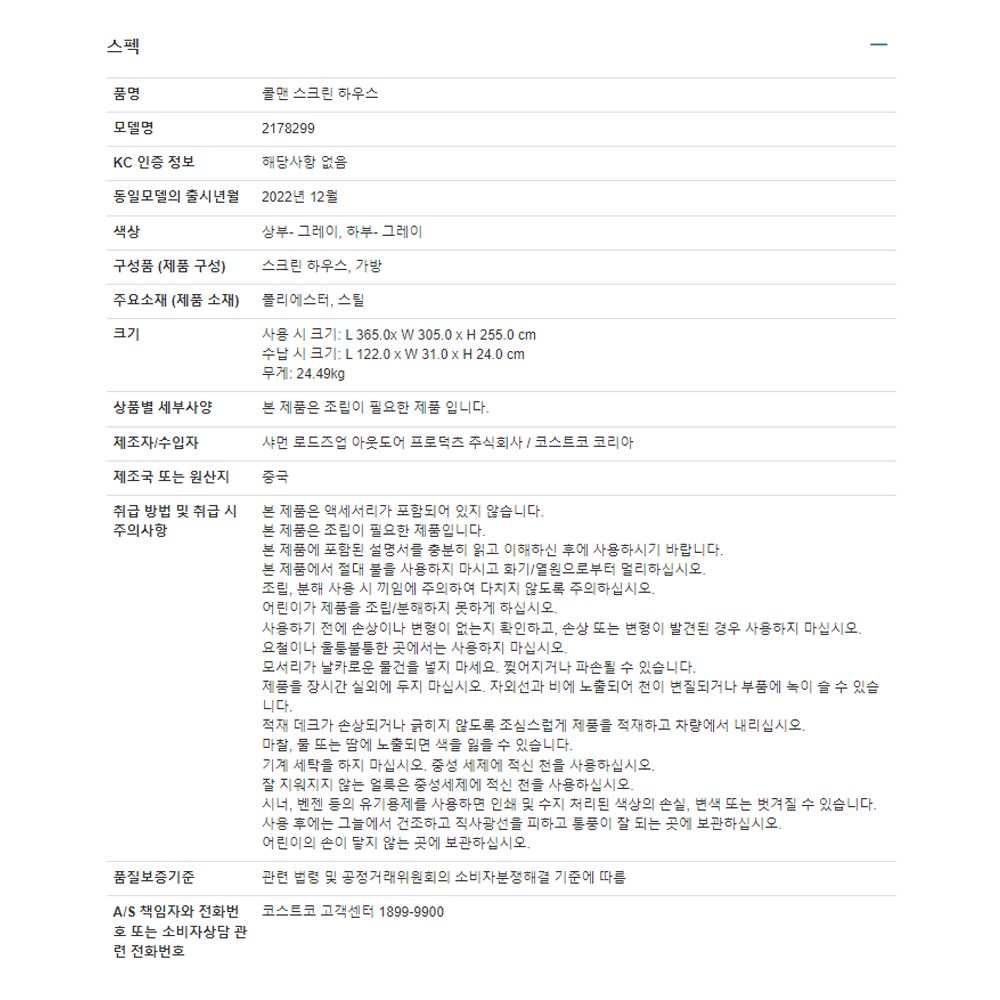 콜맨 타프 스크린하우스 그늘막 천막 차박 캠핑용품 메쉬 차양막 자외선차단 모기장 돔캐노피