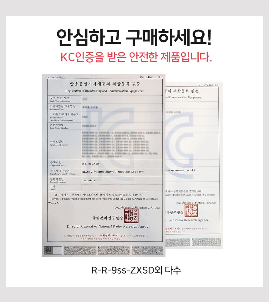 ㆍ 전기용품안전관리법 및 전기통신기본법, 전파법에 의거하여 인증 대상 상품을 구매하실 경우, 안전인증 또는 형식승인, 전자파적합등록 제품 여부를 확인하시기 바랍니다.