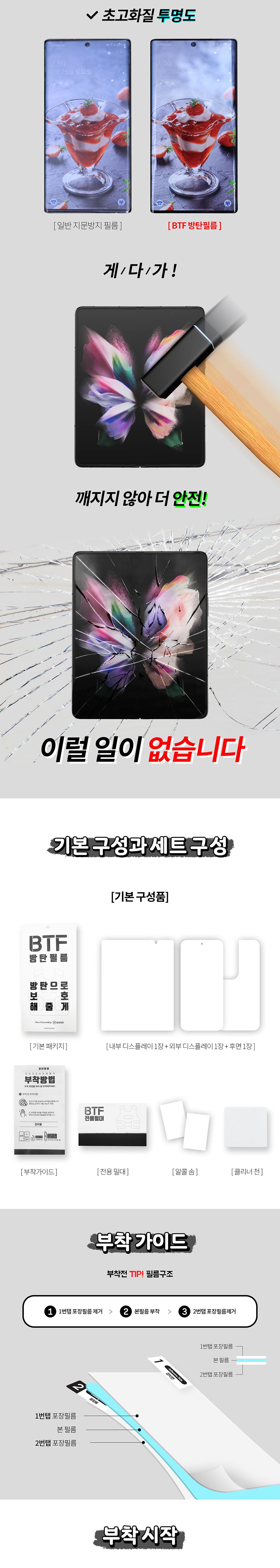 • BTF 갤럭시 Z 폴드3 풀커버 액정 보호필름 4장