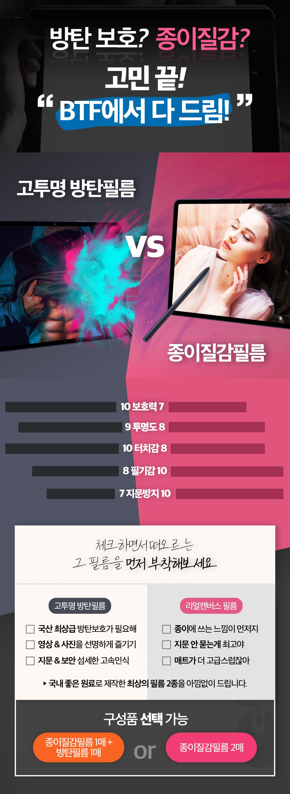 품명 BTF 리얼캔버스 갤럭시탭S8 종이질감 투명 액정 보호필름 2장
