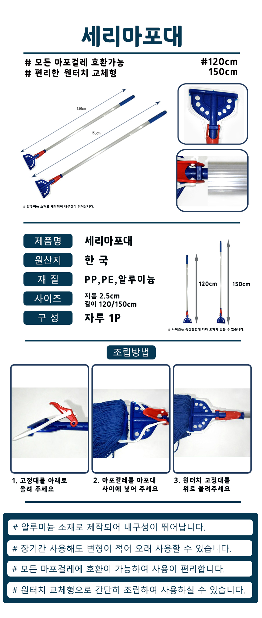 용물상 원터치 세리마포대 120cm 사무실 바닥걸레