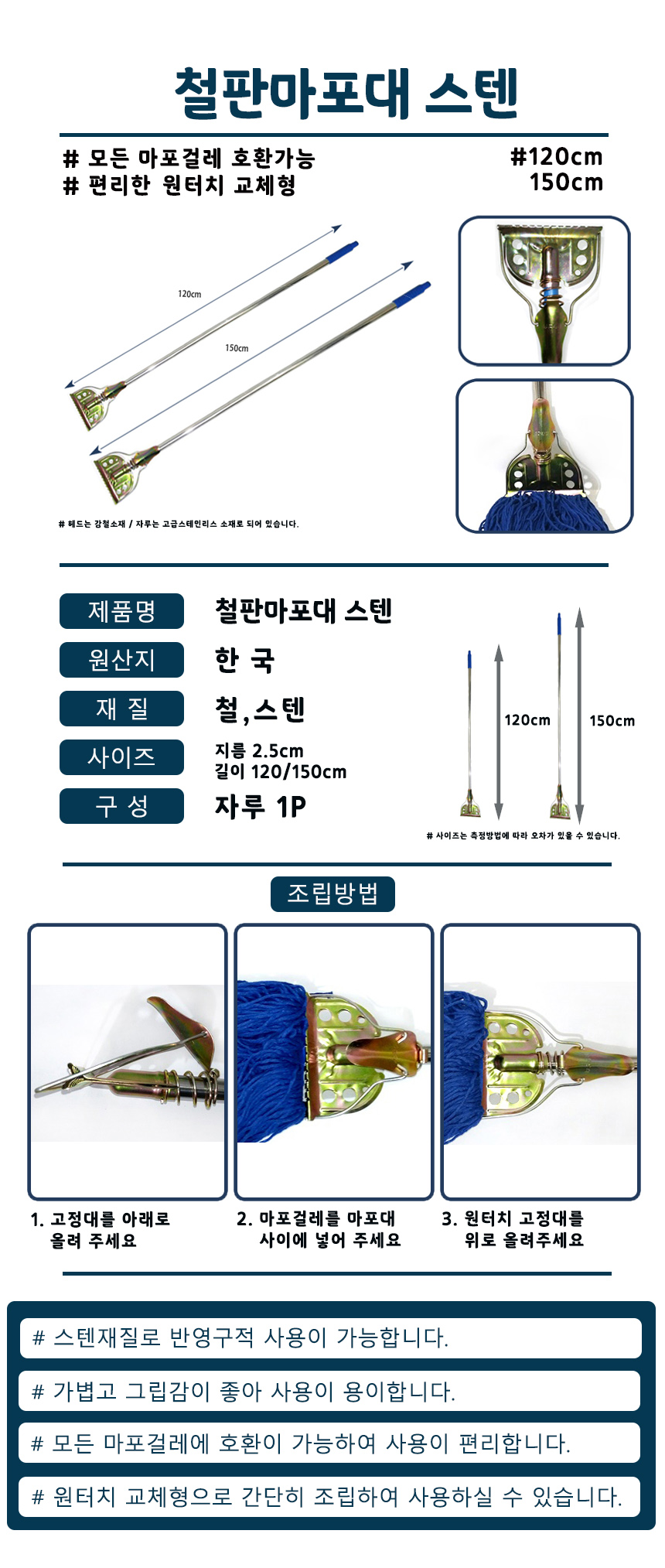 • 용물상 철판마포대 스텐자루 120cm 마포걸레
