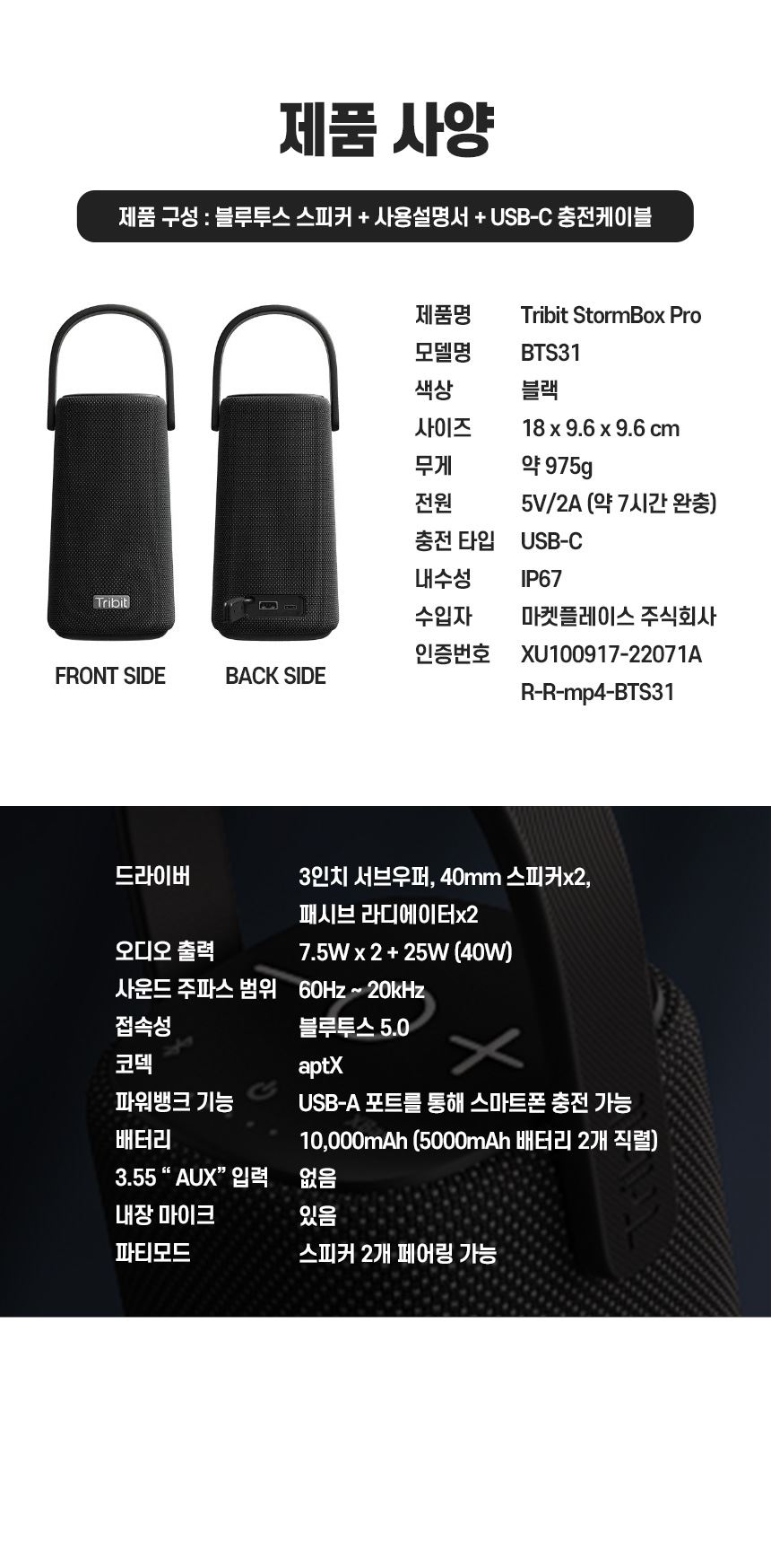 트리빗 스톰박스 프로 방수 블루투스 스피커 BTS31  / 유지앤 / 디비디비 / 구매하기 / 특가할인