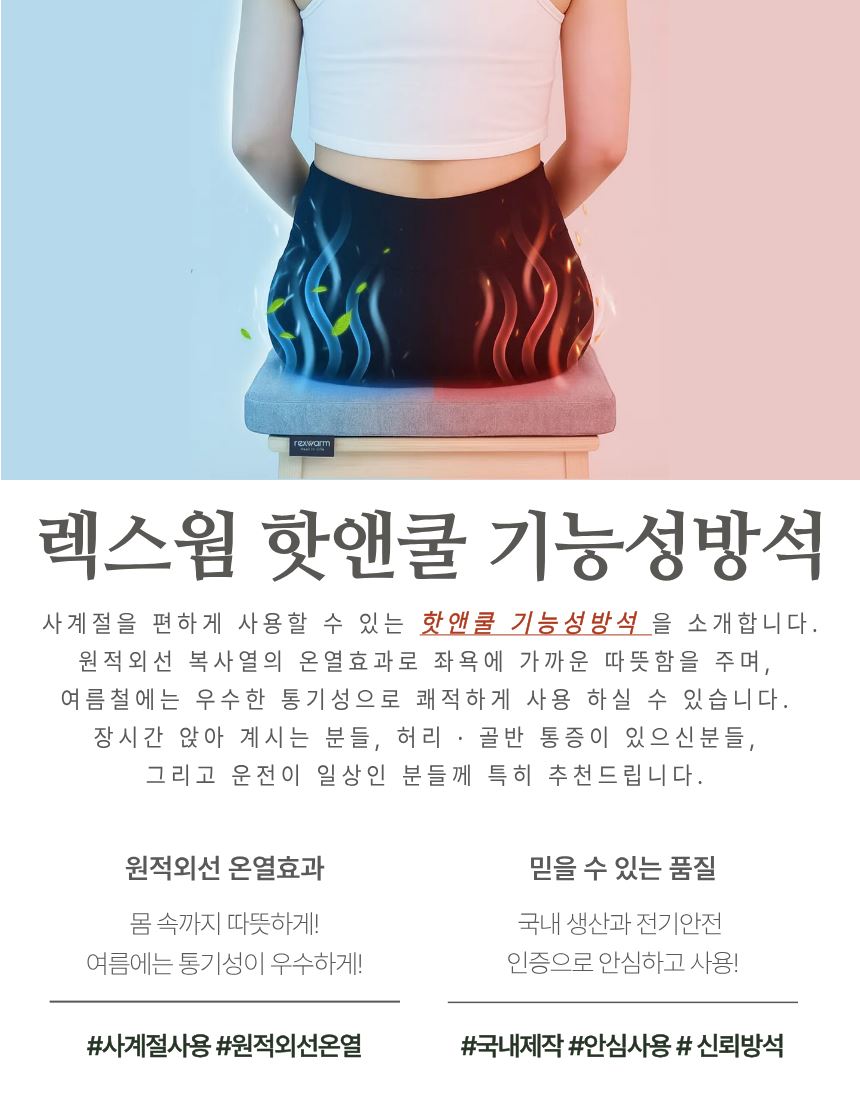 렉스웜 핫앤쿨 원적외선 1인용 온열방석