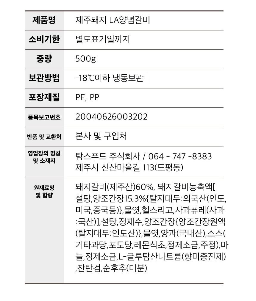• (어멍돈) 제주 돼지 LA양념갈비 500g