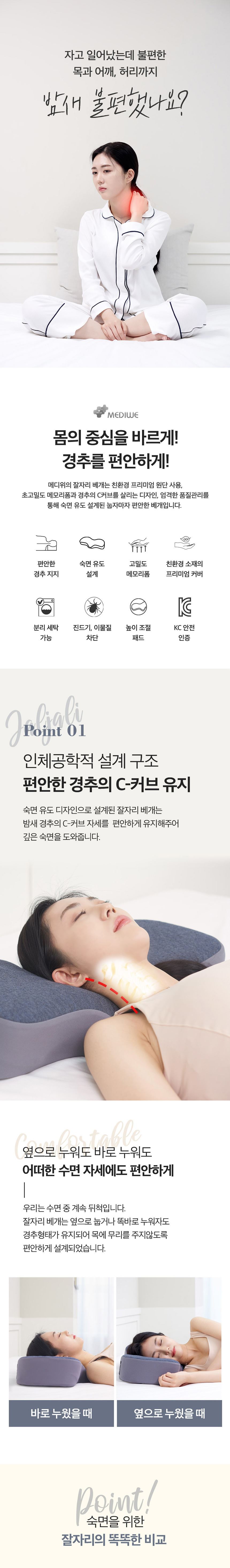 • 1+1구성 메디위 잘자리 높이조절 메모리폼 C커브 경추베개 일자목
