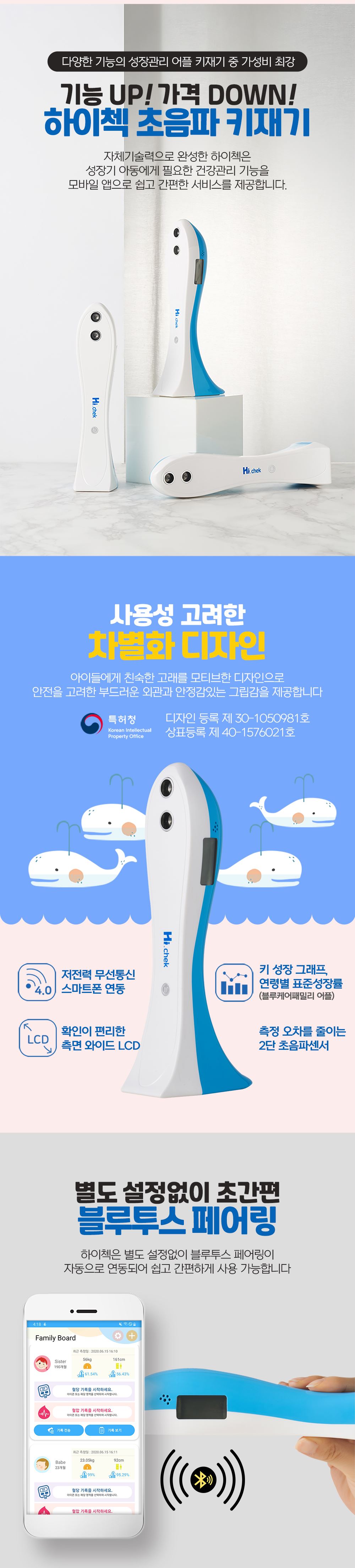 • 블루케어 블루투스 하이첵 초음파 아이 키재기 BCHC-H1 신장계 블루케어패밀리어플증정