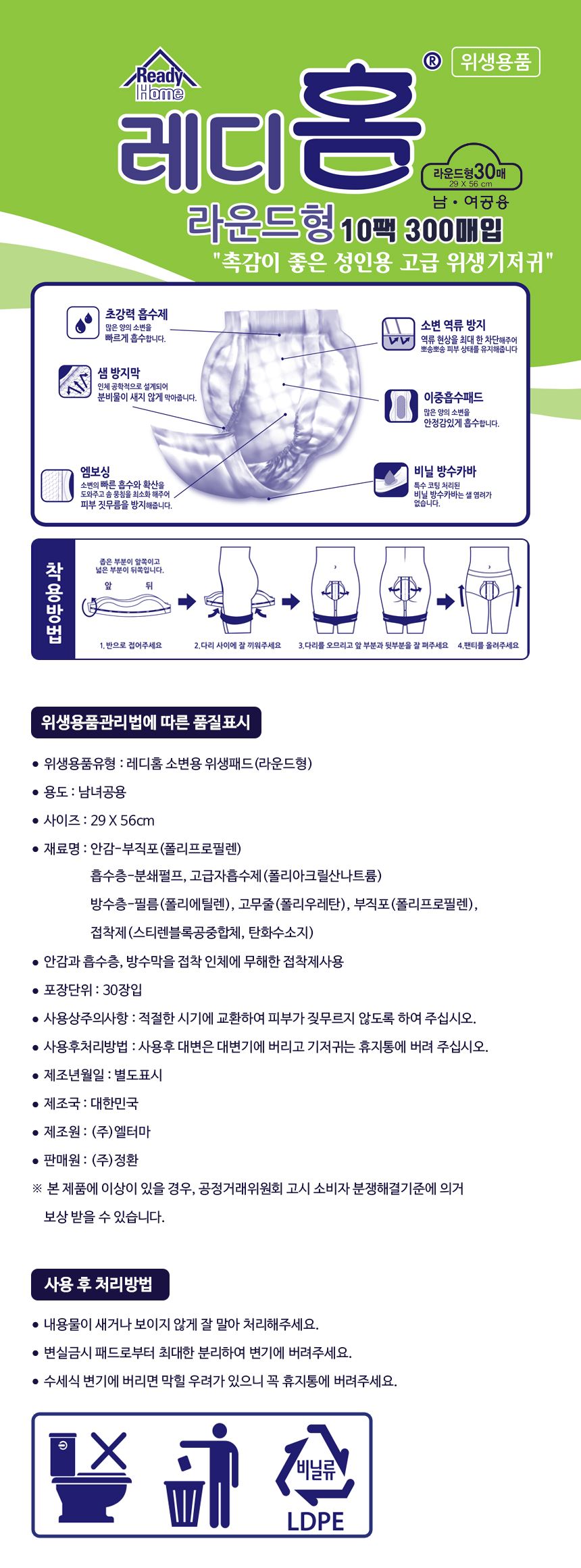 • 레디홈 라운드형 속기저귀 1팩30매 총10팩 성인기저귀