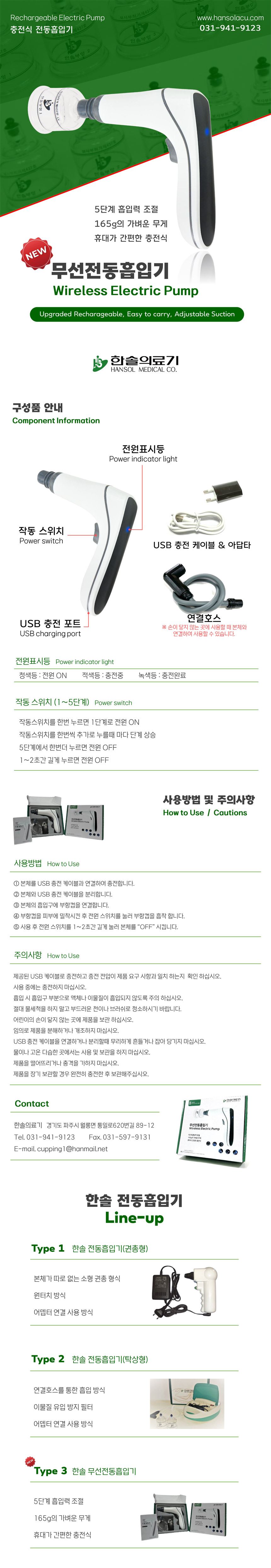 • 한솔의료기 무선 전동 흡입기 HSS-2000 충전식 부항기 부황기