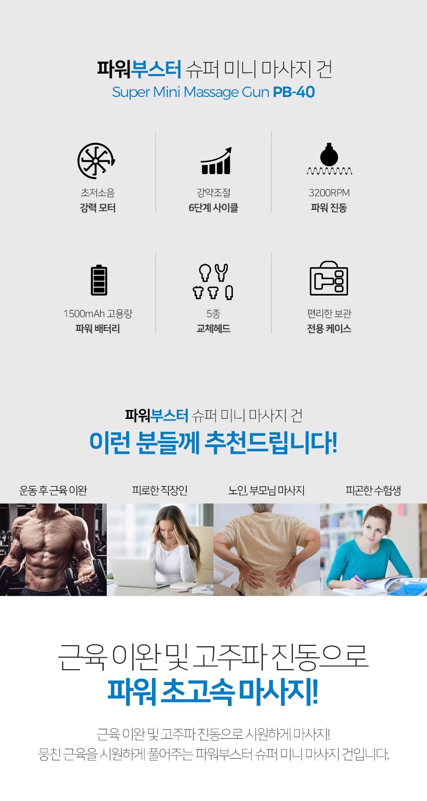 • 파워부스터 미니 마사지건 PB-40 손 손목 바디 액티브 무선진동기 마사지기