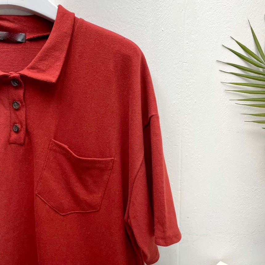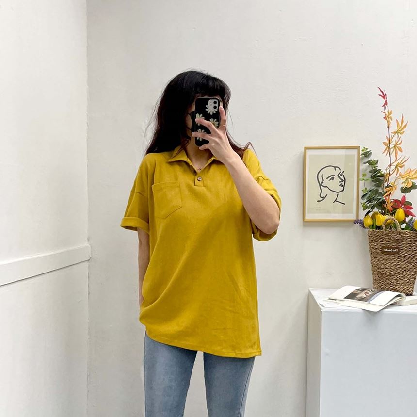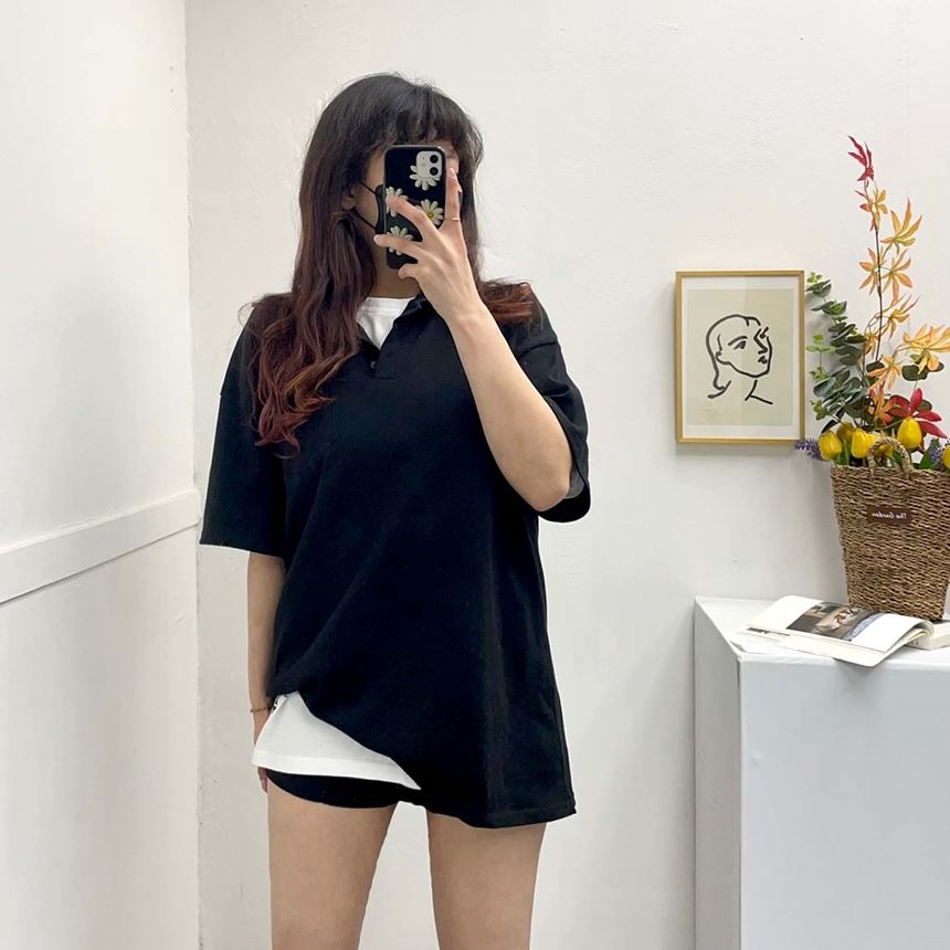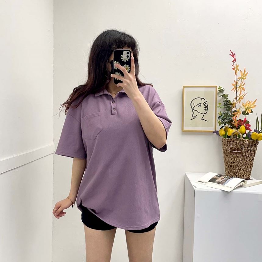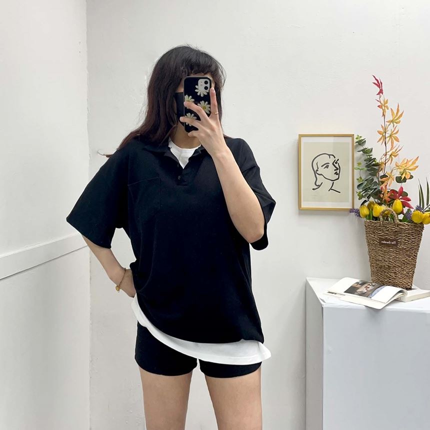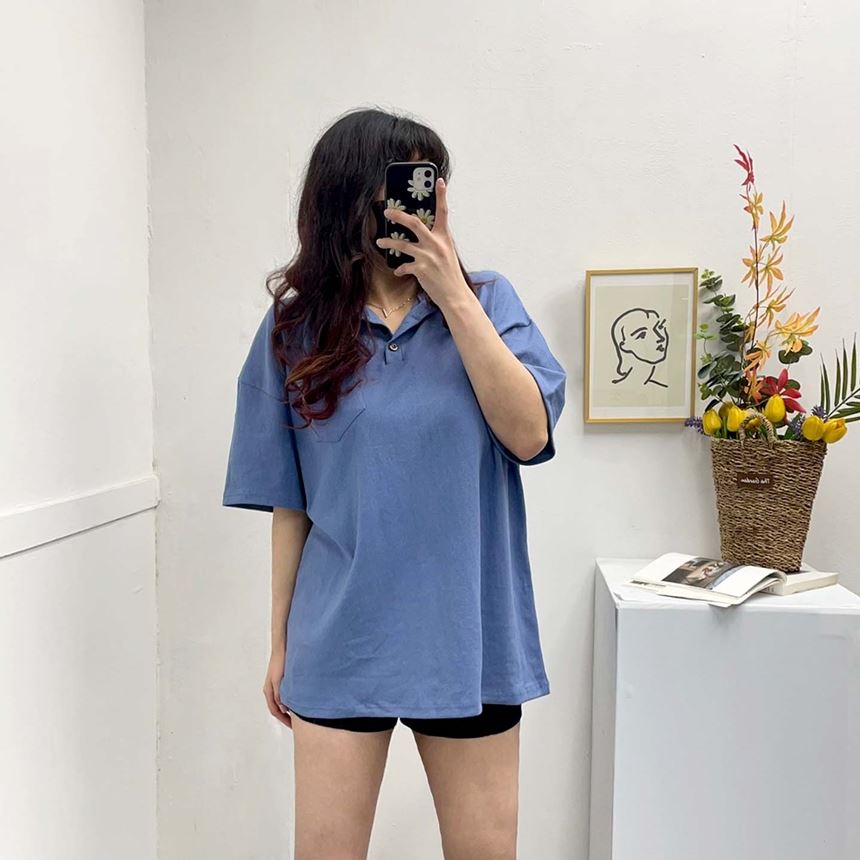 • 남녀공용 루즈핏 포켓 카라 반팔 티셔츠