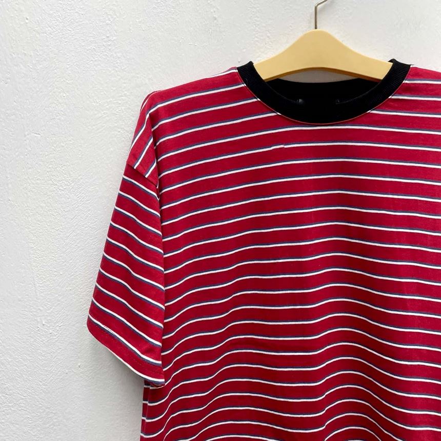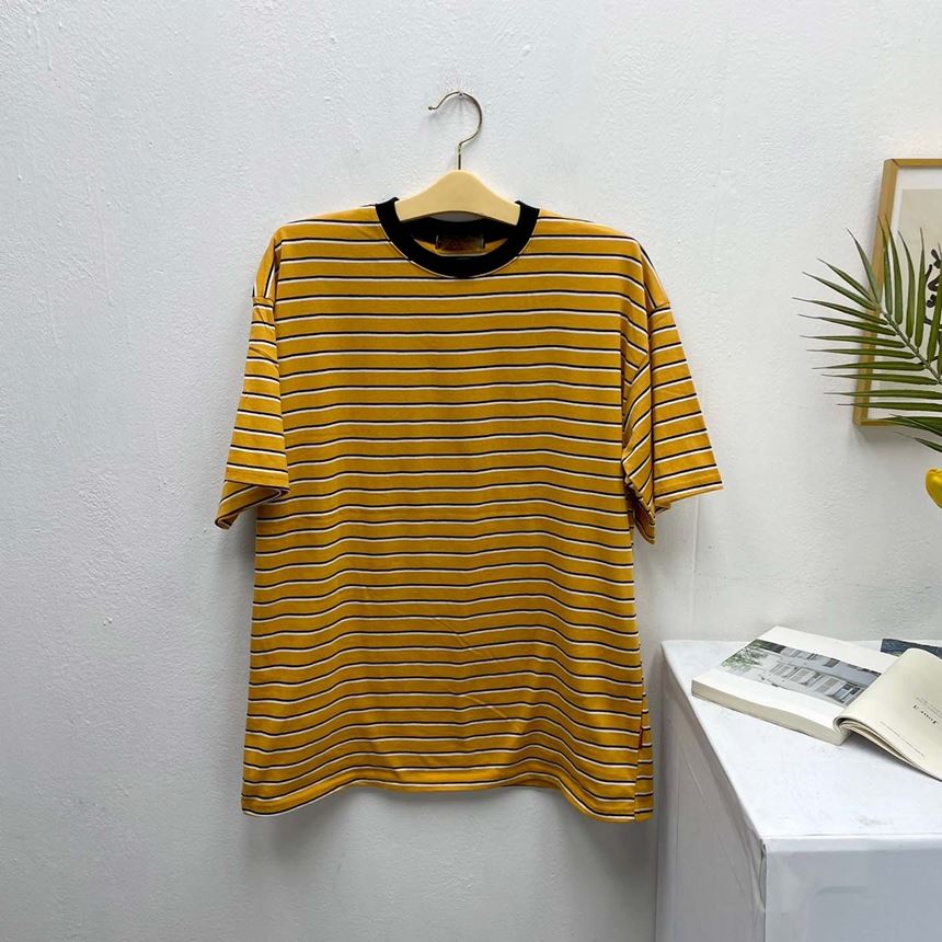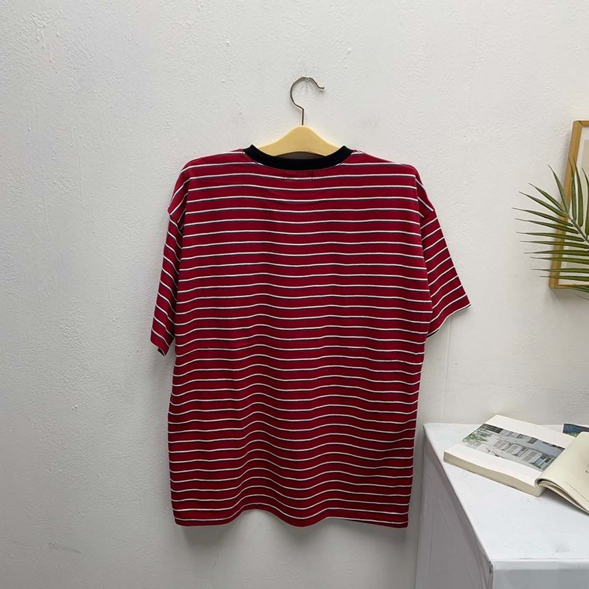 • 남녀공용 배색 스트라이프 반팔 티셔츠
