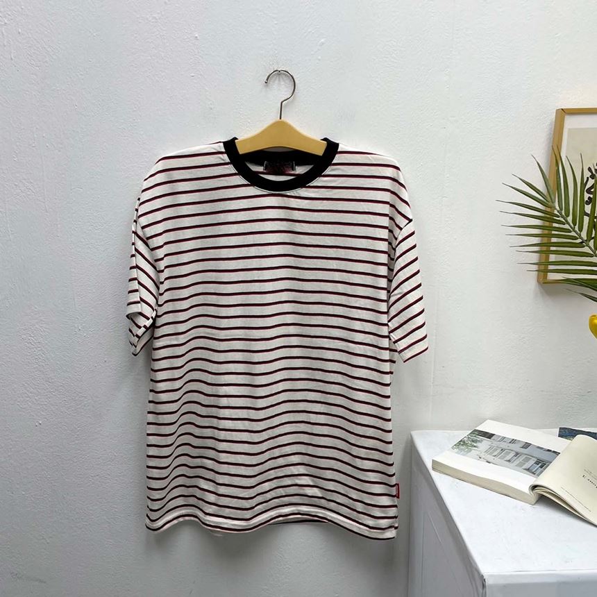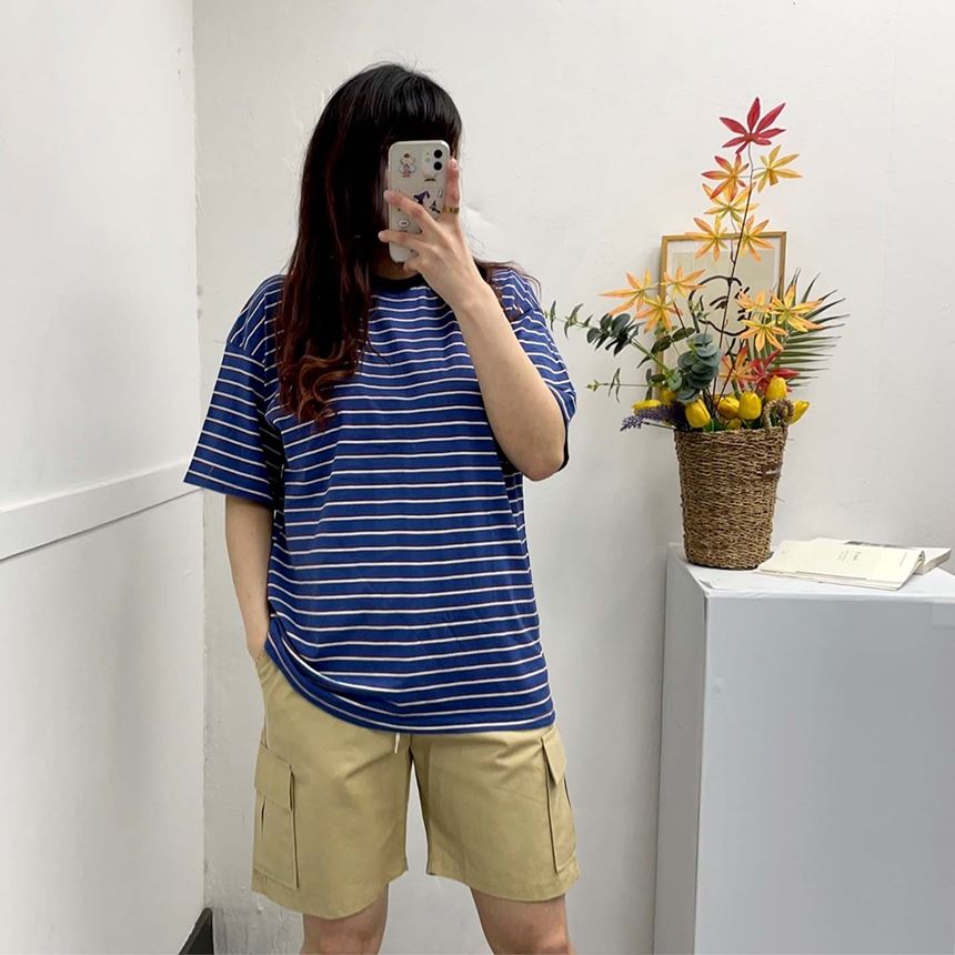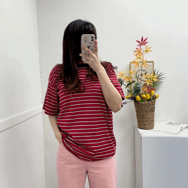 남녀공용 배색 스트라이프 반팔 티셔츠