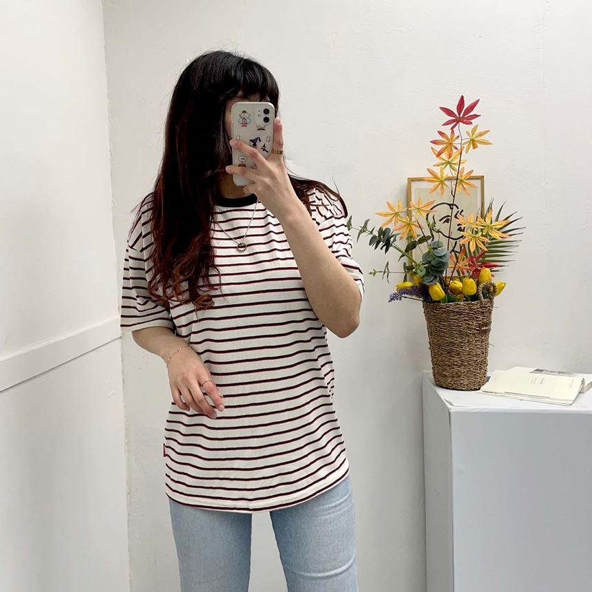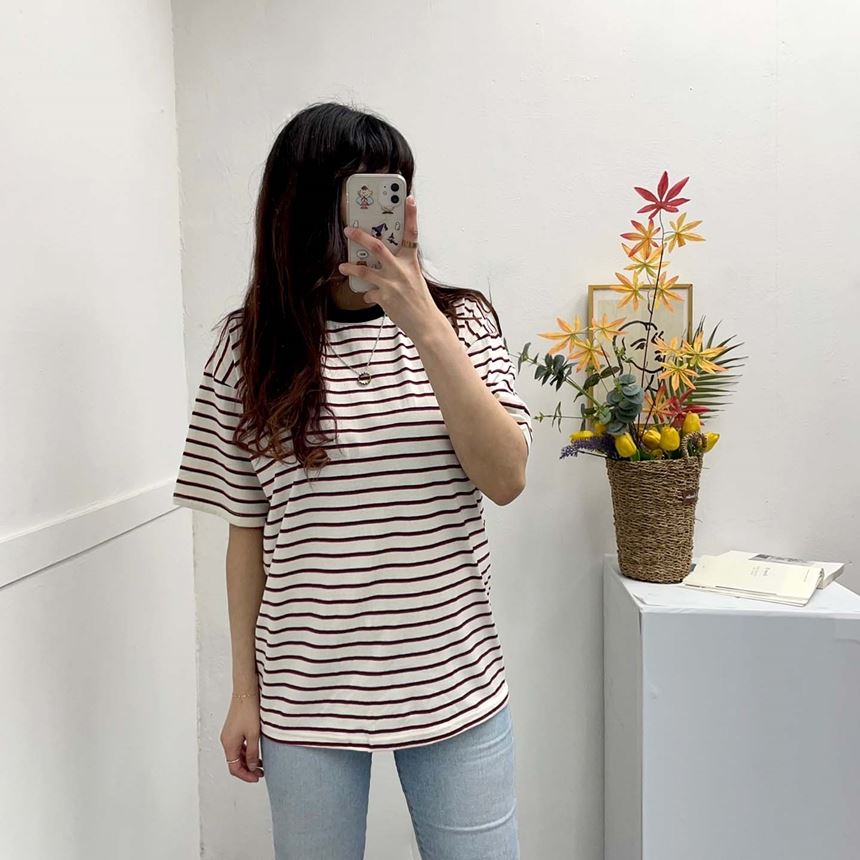 남녀공용 배색 스트라이프 반팔 티셔츠 / 민클로즈 / 디비디비 / 구매하기 / 특가할인