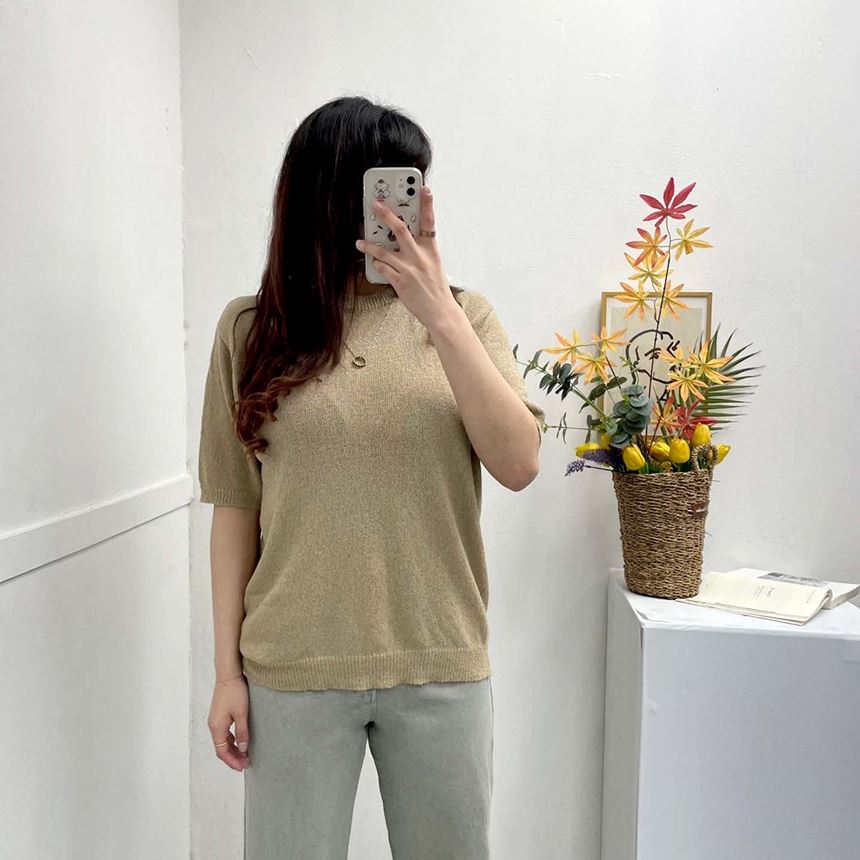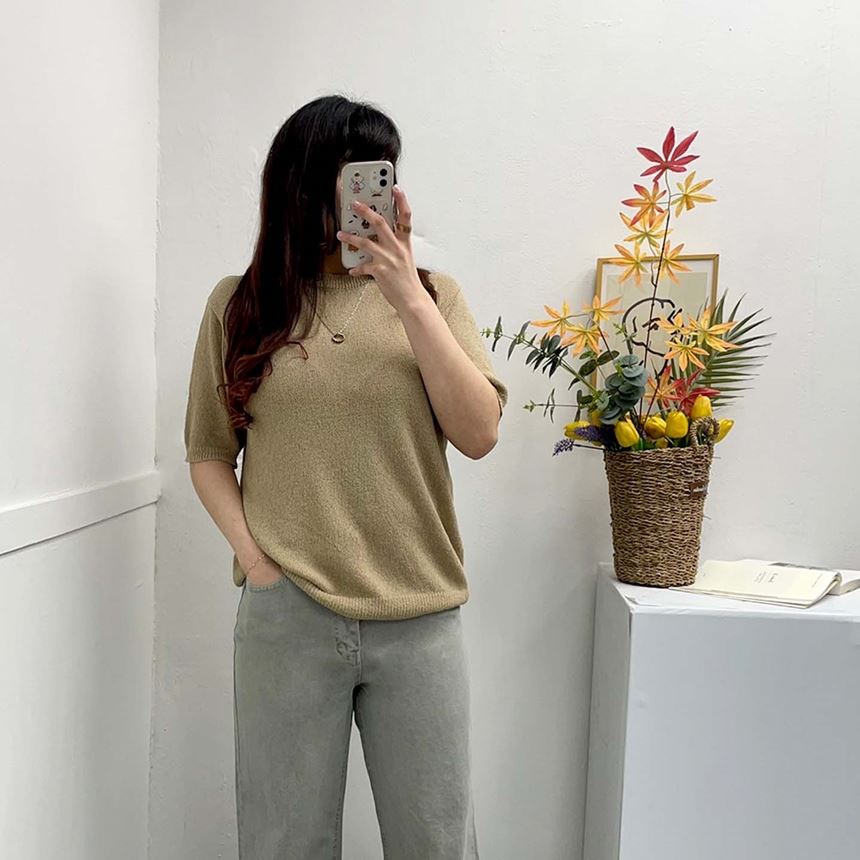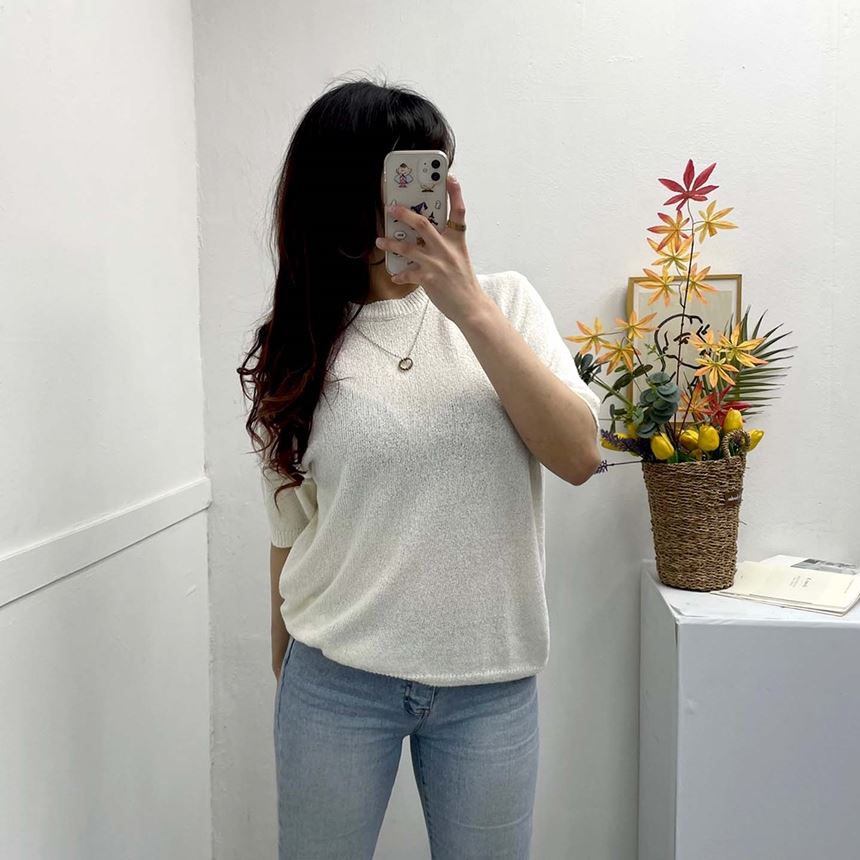 • 남녀공용 루즈핏 부클 라운드 반팔 니트