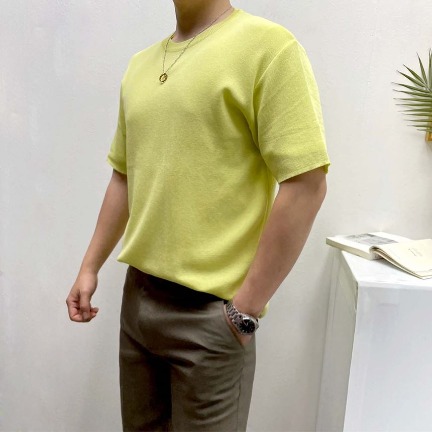 • 남녀공용 시원한 린넨 라운드 반팔 니트