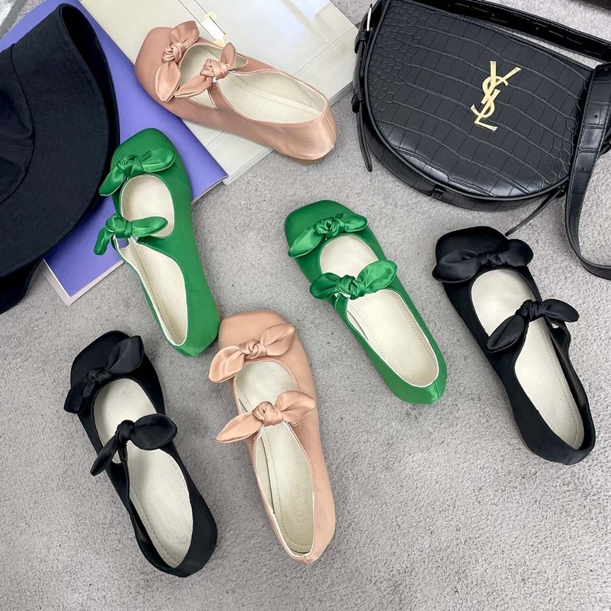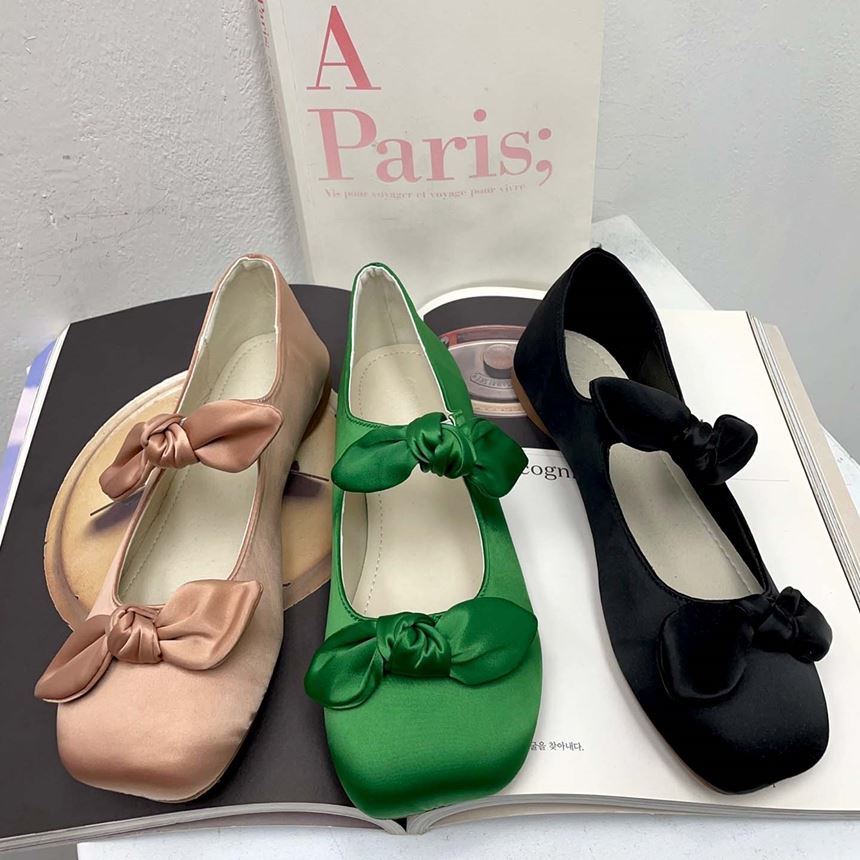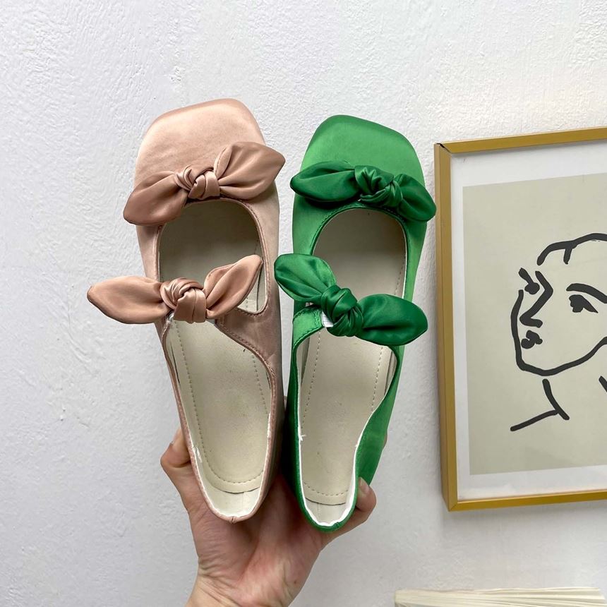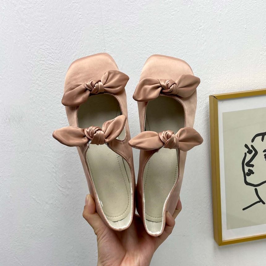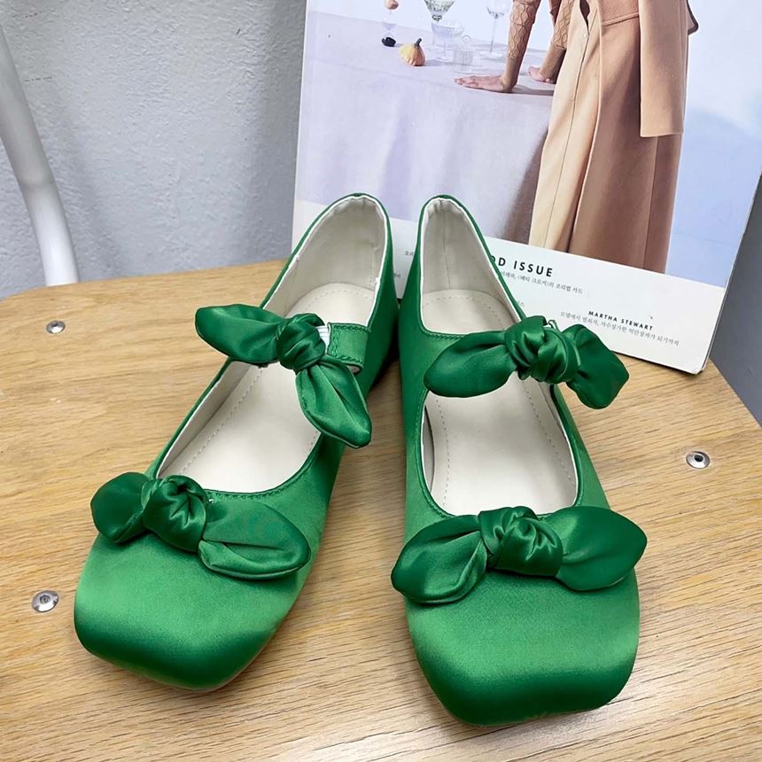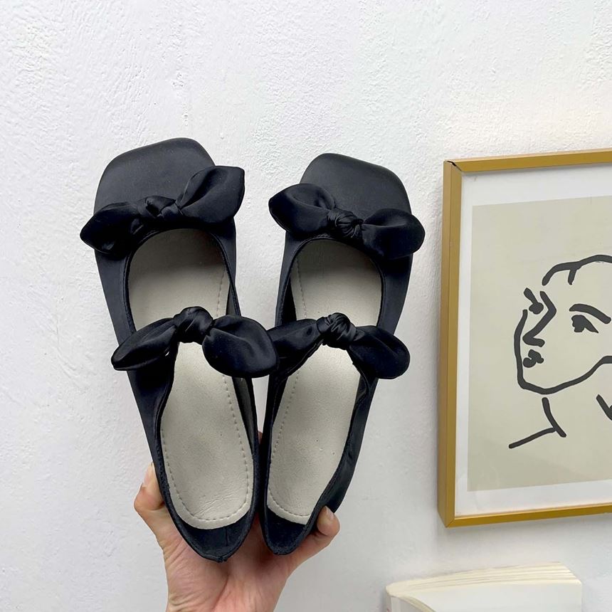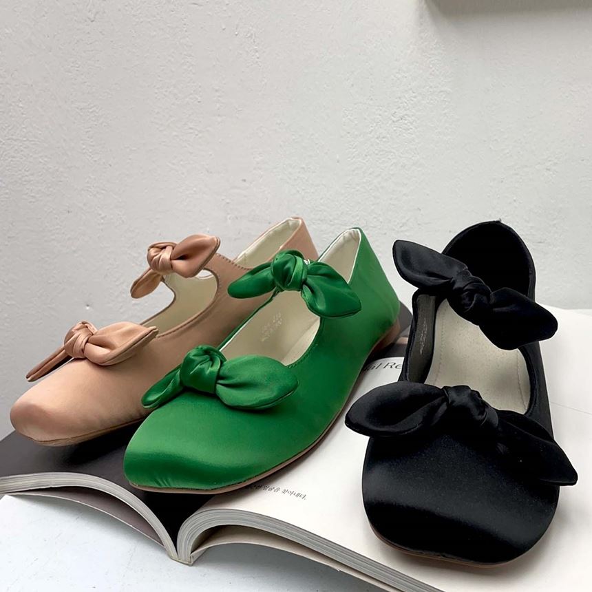 • 정사이즈로 나온 발등 리본 스트랩 플랫이에요