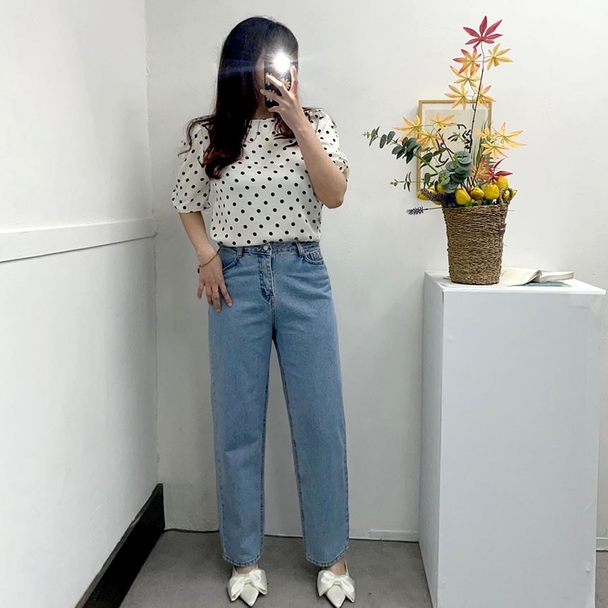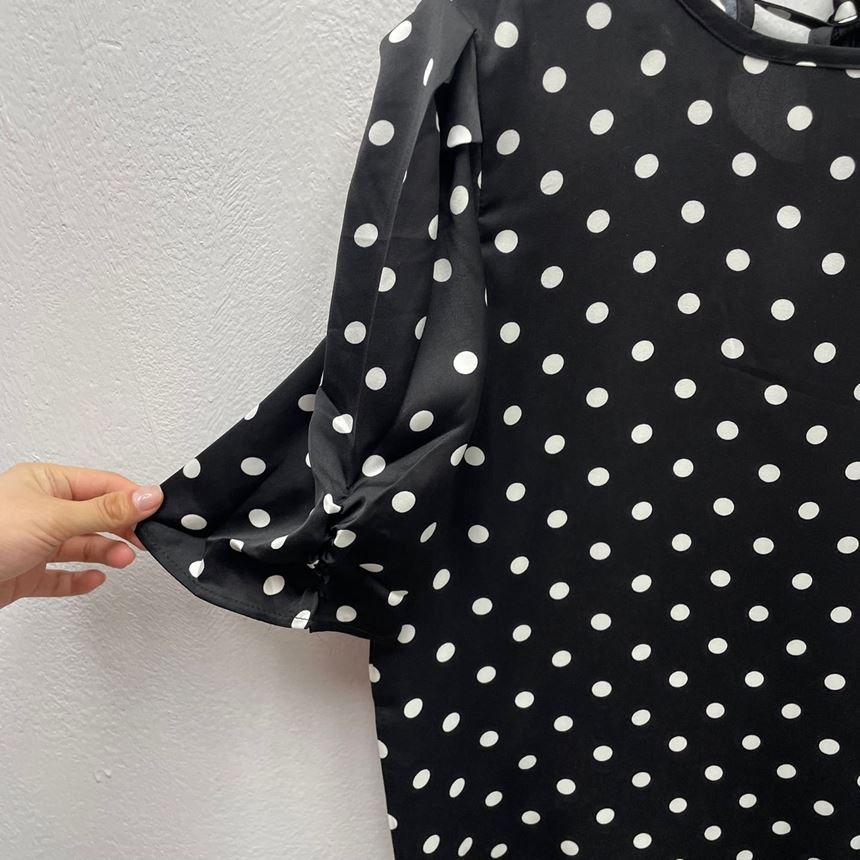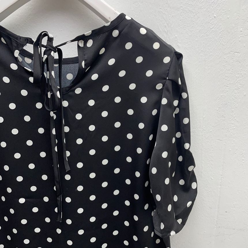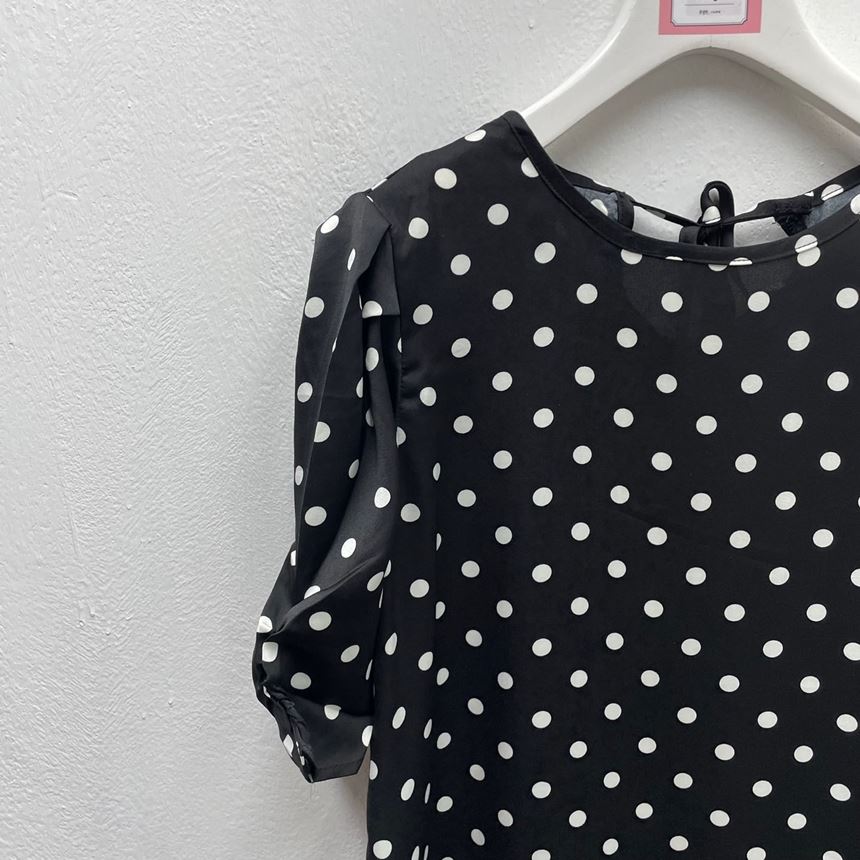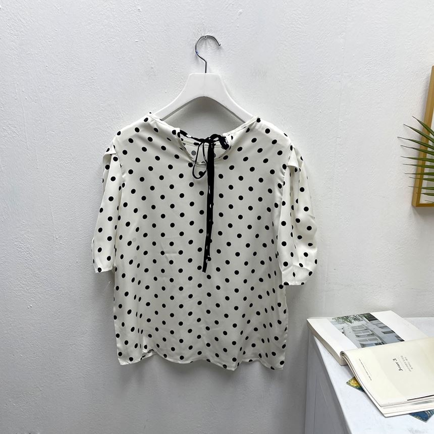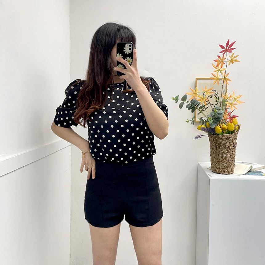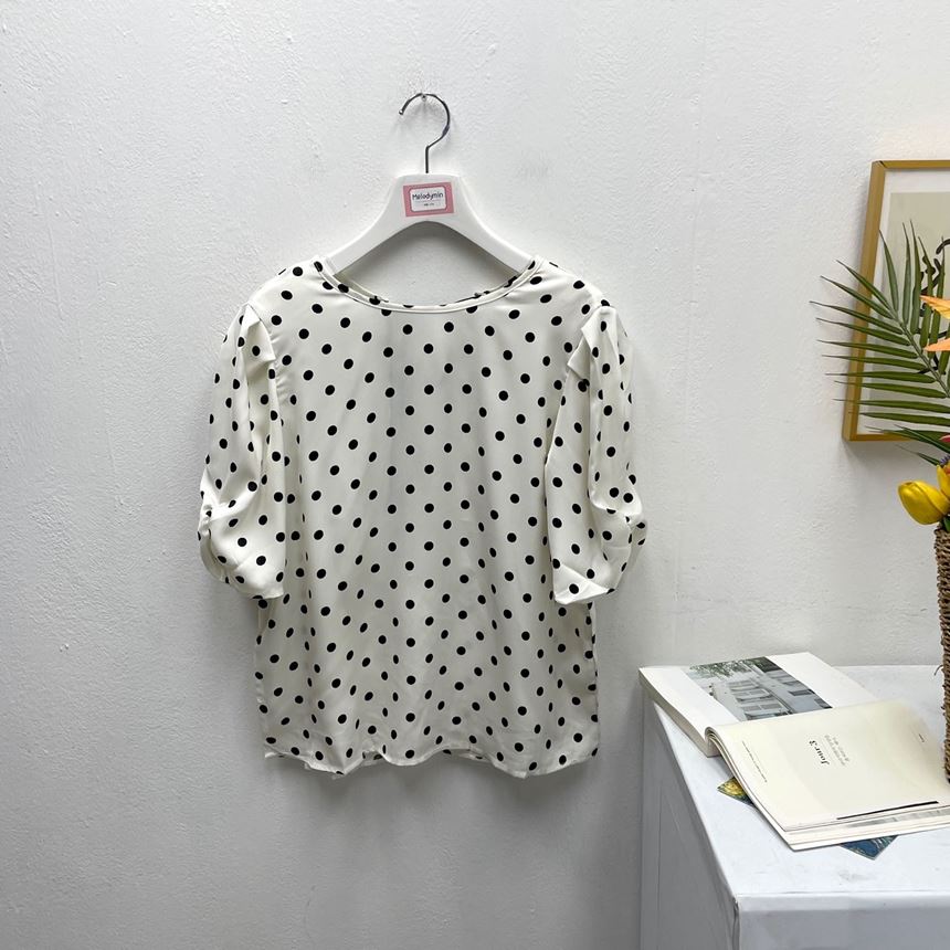 • 퍼프 셔링 땡땡이 반팔 블라우스