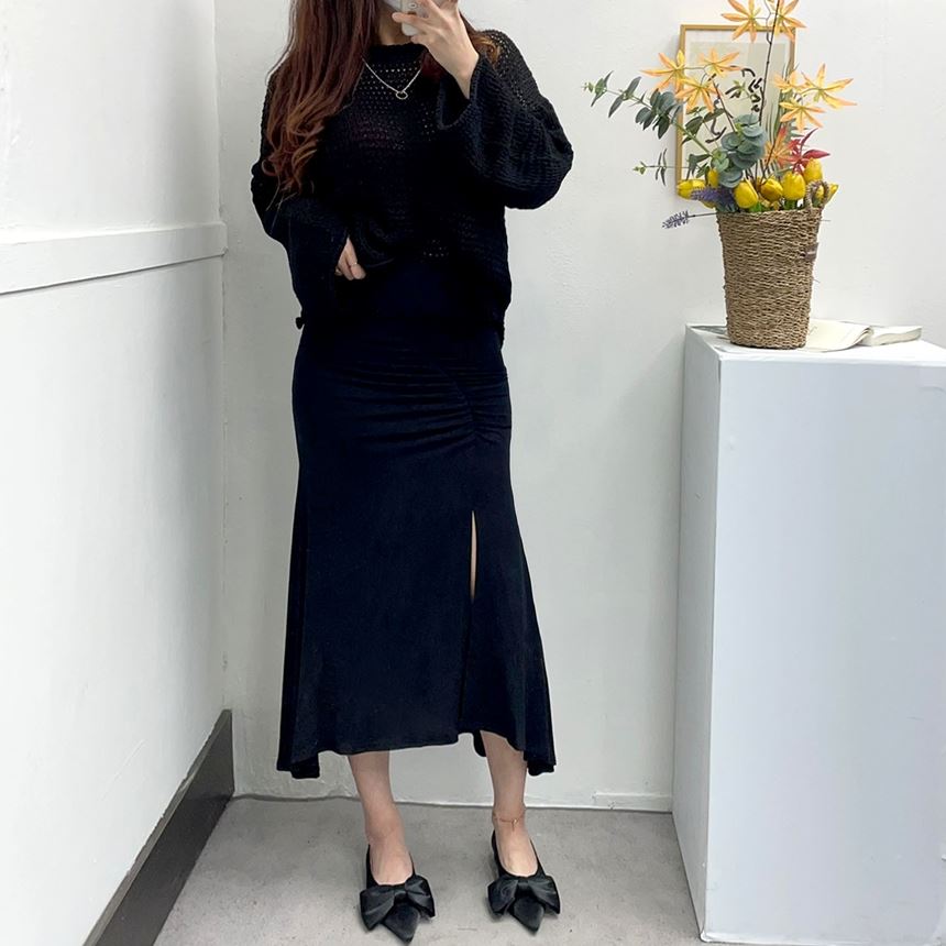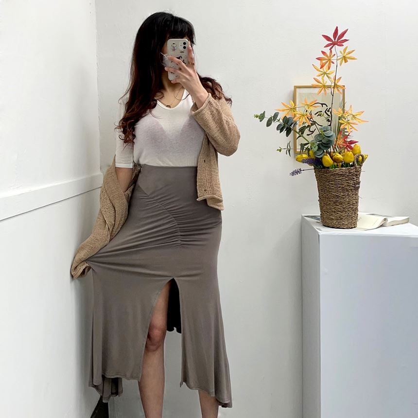 • 완전 편하고 스판 짱짱한 언발 앞트임 셔링 스커트에요