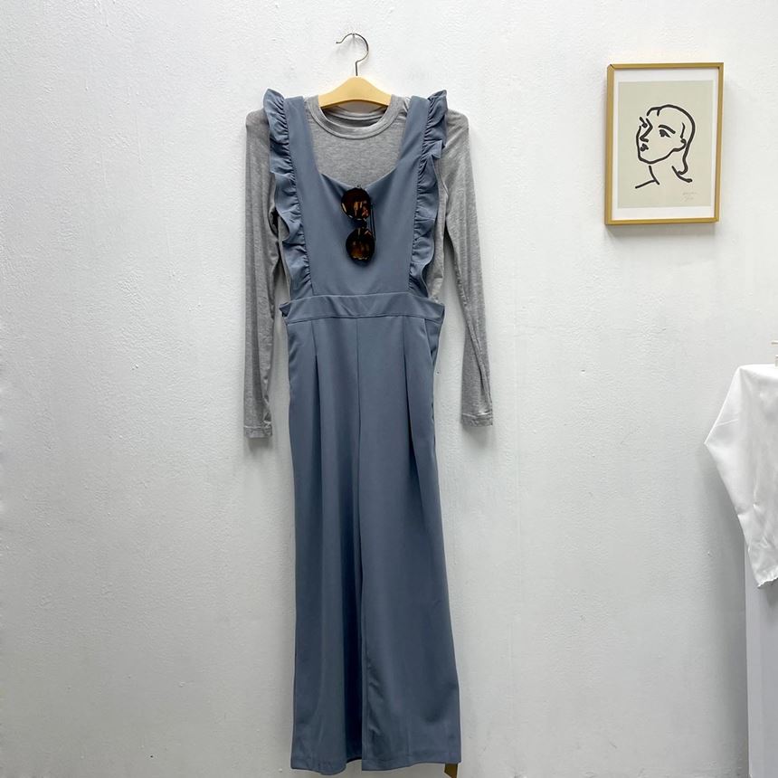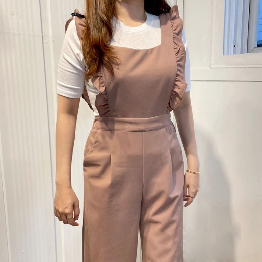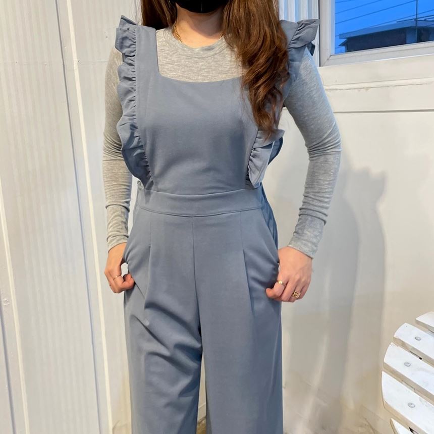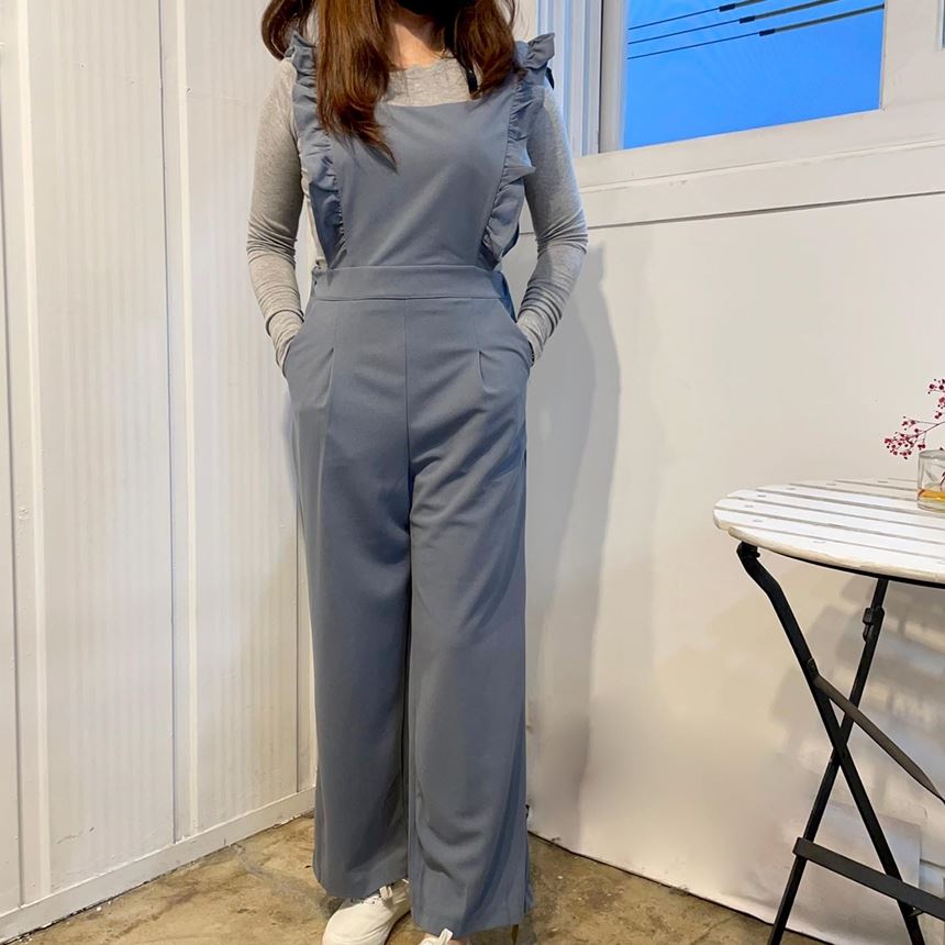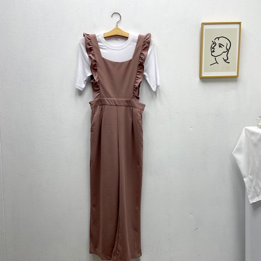 • 스퀘어넥 프릴 멜빵 밴딩 점프슈트