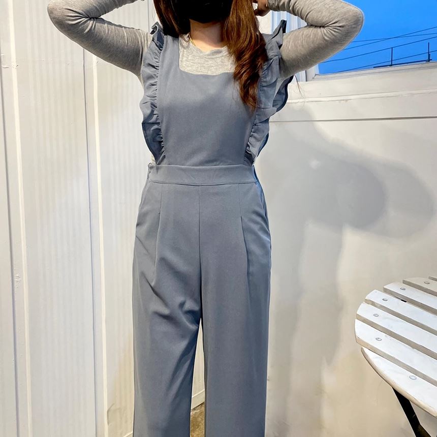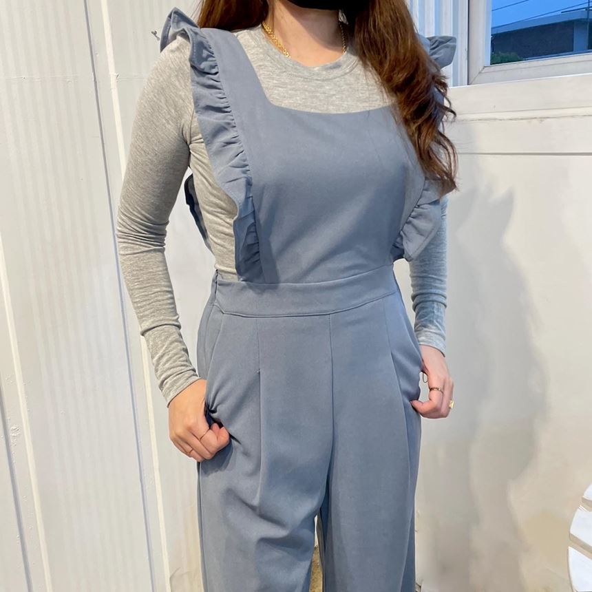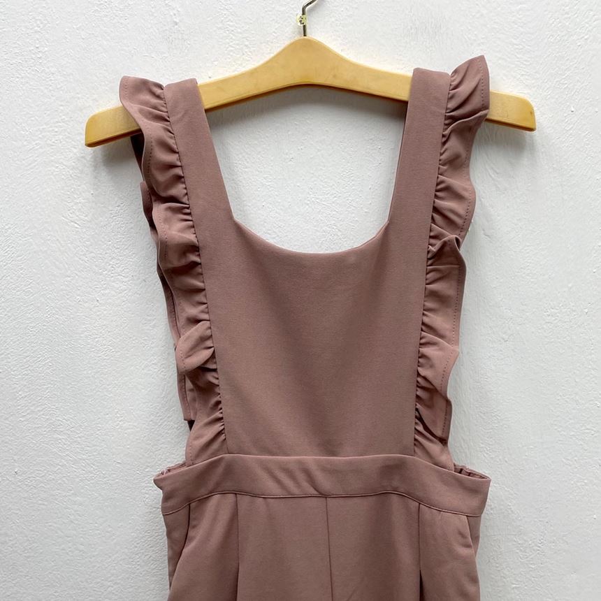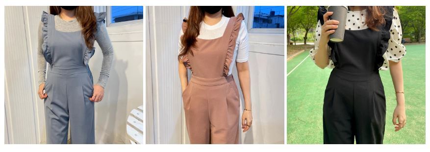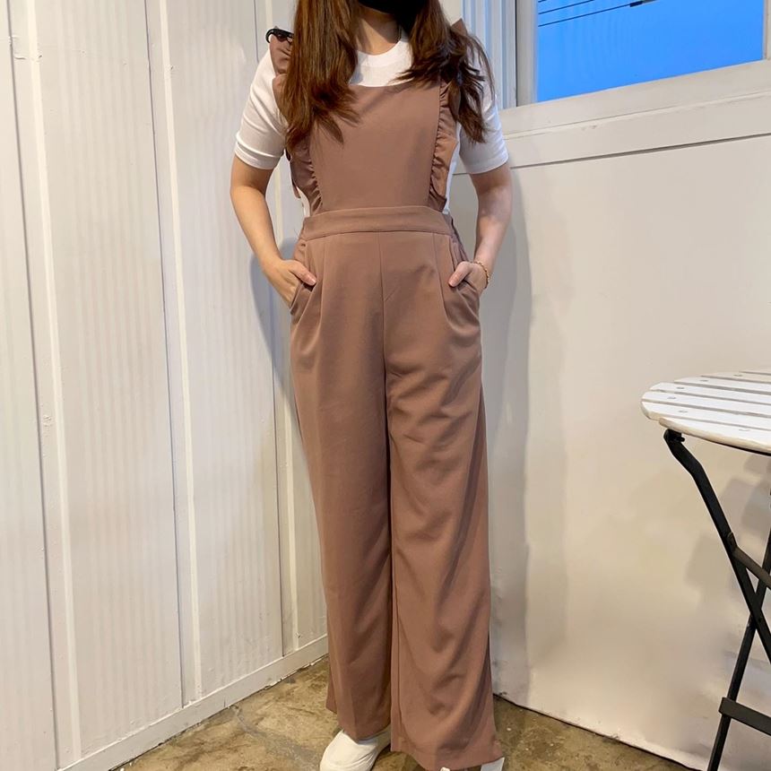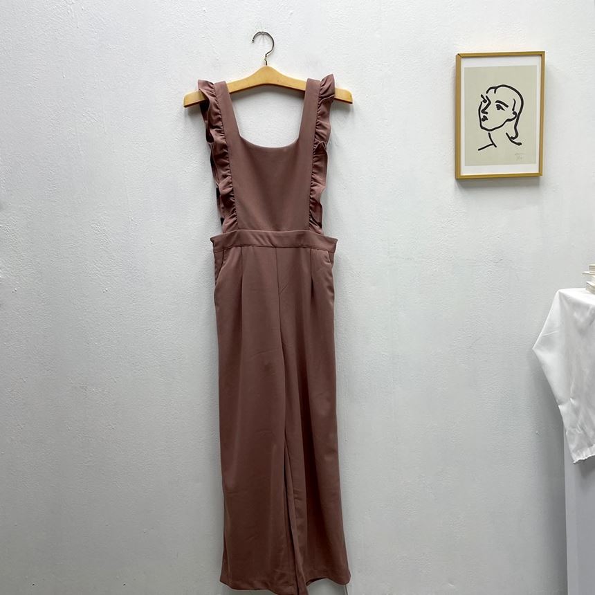 • 스퀘어넥 프릴 멜빵 밴딩 점프슈트